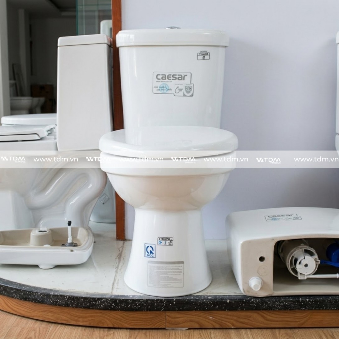 Reviews Over Bồn Cầu CAESAR CT1338 Thùng T1138 1 Nhấn Nắp Thường