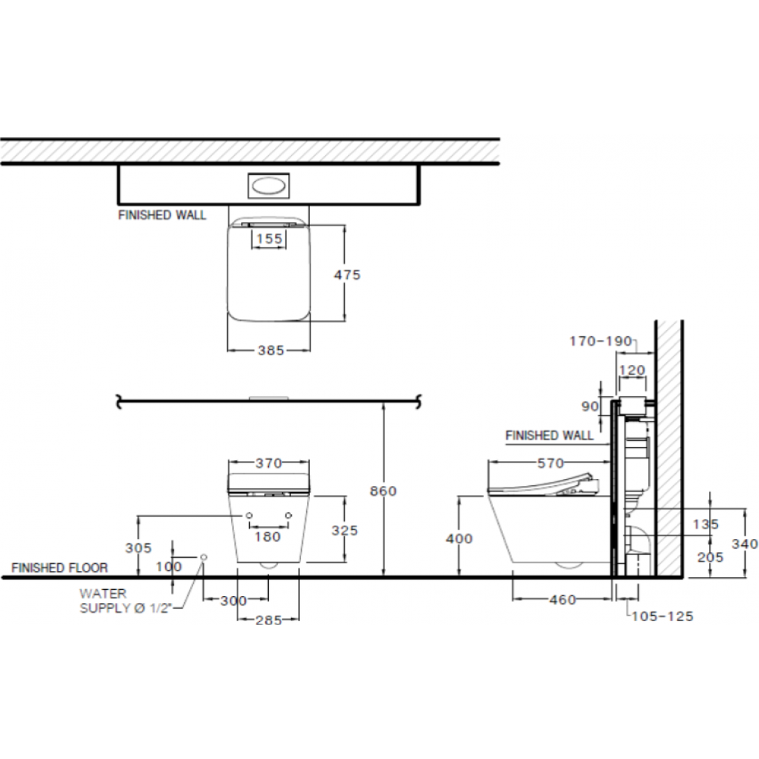 Thông tin cơ bản bồn cầu treo tường nắp điện tử Cotto SC197627(CV8)