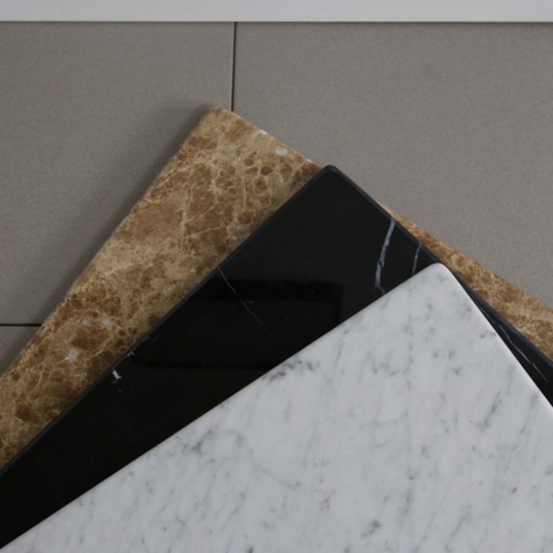 - Mặt bàn có chất liệu bằng đá tự nhiên nên sở hữu các vân, vệt trên mỗi tấm đá là ngẫu nhiên khác nhau, đem lại nét đẹp độc đáo riêng biệt. Chúng được những người thợ đá lành nghề chế tác thủ công cắt đá theo quy cách, mài dũa tỉ mỉ để hoàn thiện. Mặt đá có 3 loại khác nhau gồm: Trắng ý, nâu Tây Ban Nha và đen tia chớp, tùy từng tông màu nội thất của gian phòng, công trình mà người dùng, kiến trúc sư có thể lựa chọn cho phù hợp.