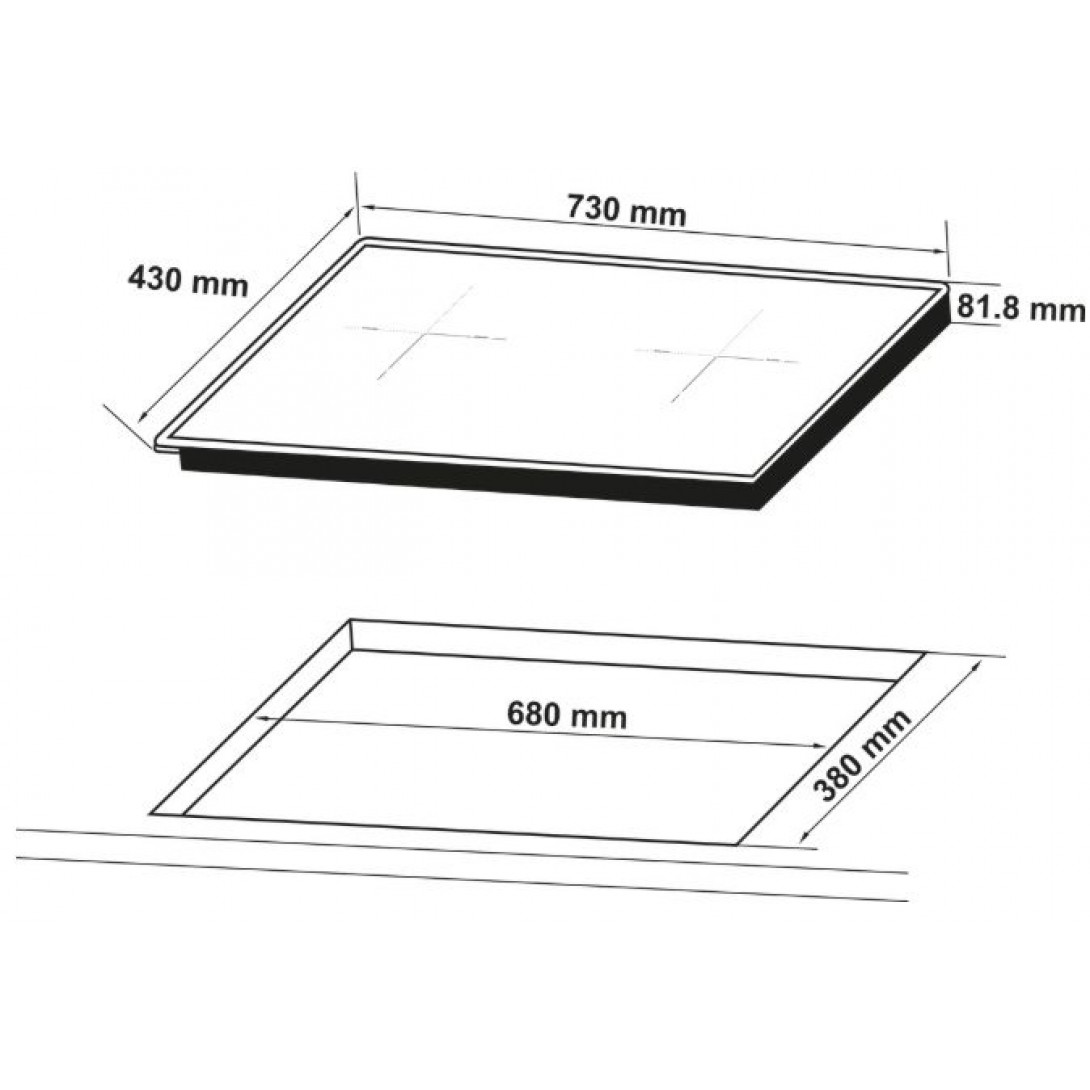 - + Vùng nấu từ bên phải: Ø200 mm - 1,8/2,0 kW (gia nhiệt nhanh)