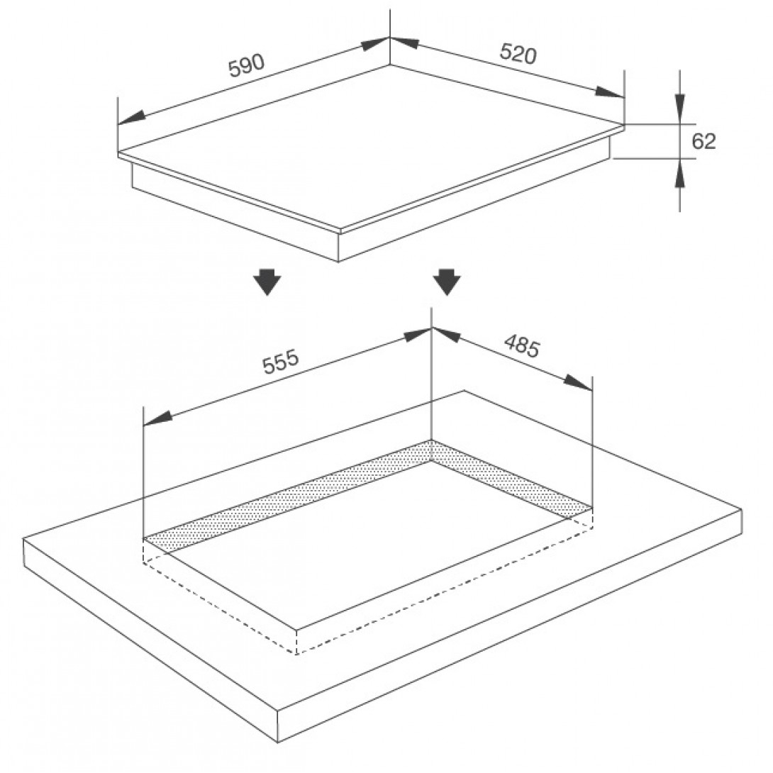 - Kích thước bếp: W590 x D520 x H58mm