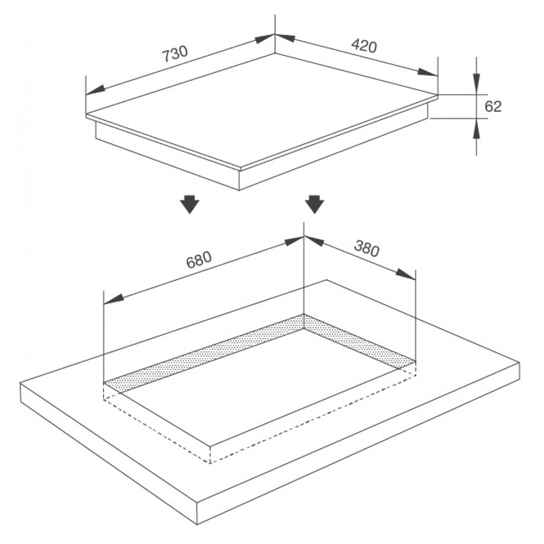 - Kích thước bếp: W730 x D420 x H62mm