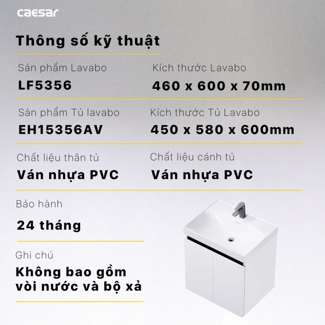 Thông số kỹ thuật lavabo LF5356-EH15356AV CAESAR