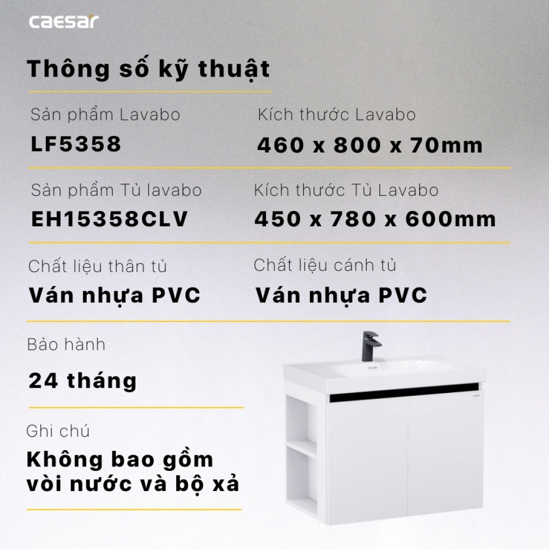 Thông số kỹ thuật lavabo LF5358-EH15358CLV CAESAR