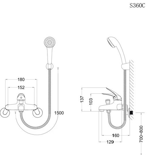 Thông số kỹ thuật sen cây nóng lạnh S360C/BS125