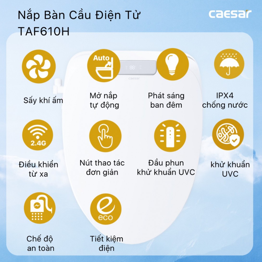 Bồn Cầu Nắp Rửa Điện Tử CAESAR CD1340/TAF610H Tự Động Đóng Mở Nắp