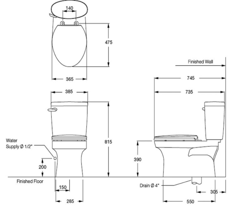 Bản vẽ bồn cầu C1388 COTTO dòng Timon 2 khối