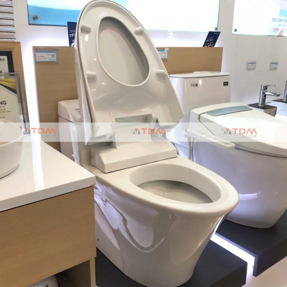 - Bàn cầu AC 1008 VRN Inax có thể kết hợp với nắp điện tử, nắp rửa cơ