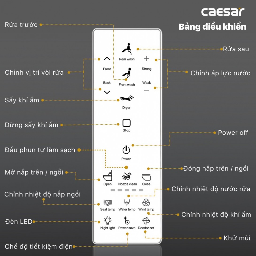 Tính năng bồn cầu điện tử Caesar CD1342 + TAF512H