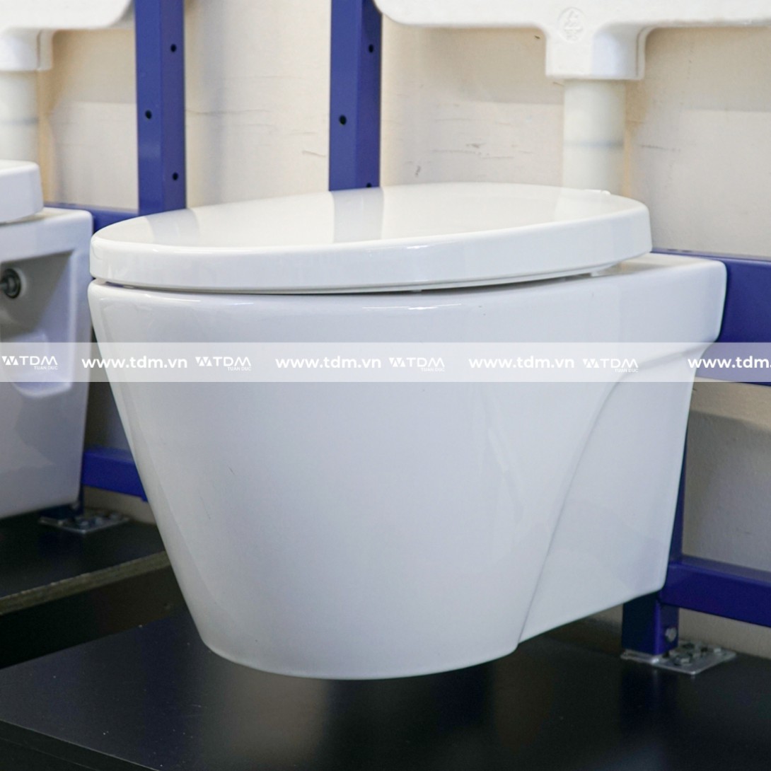 - Bàn cầu kiểu dáng treo tường giúp dễ dàng vệ sinh
