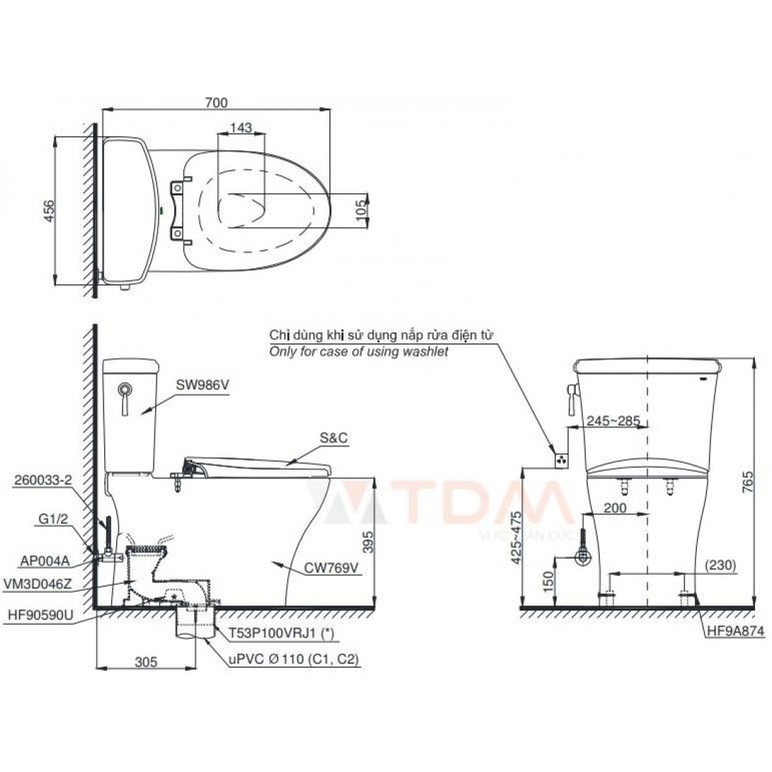 Thông số kỹ thuật bồn cầu nắp điện tử TOTO MS885CDW12 Bồn cầu nắp điện tử thông mi..