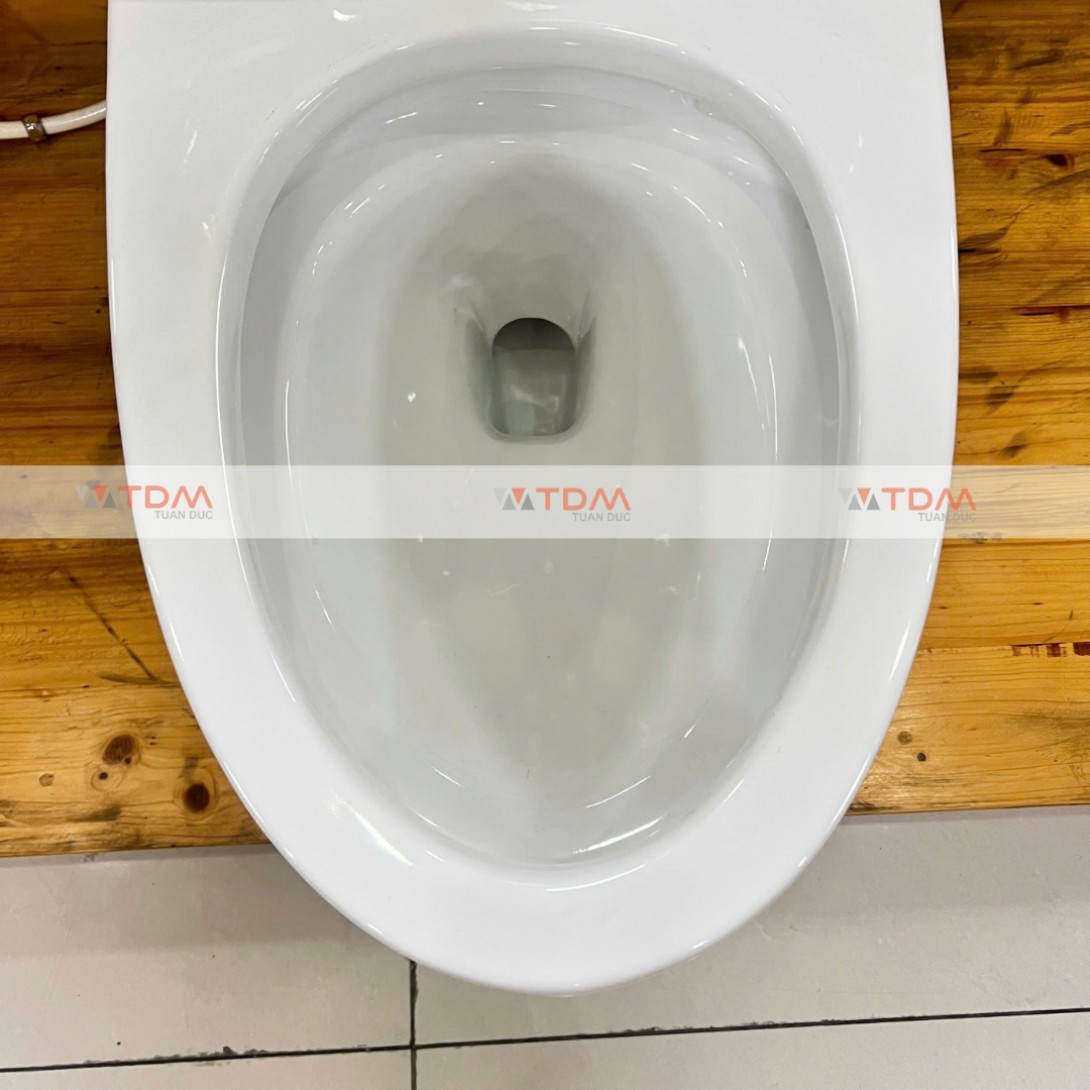 - Bồn cầu thân kín tạo kiểu dáng hiện đại đồng thời dễ dàng vệ sinh sản phẩm