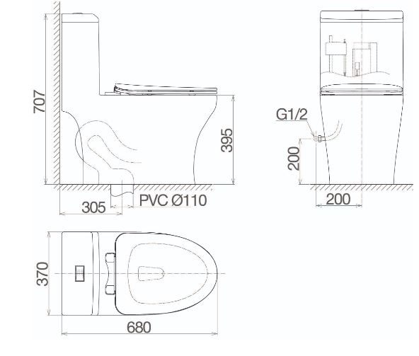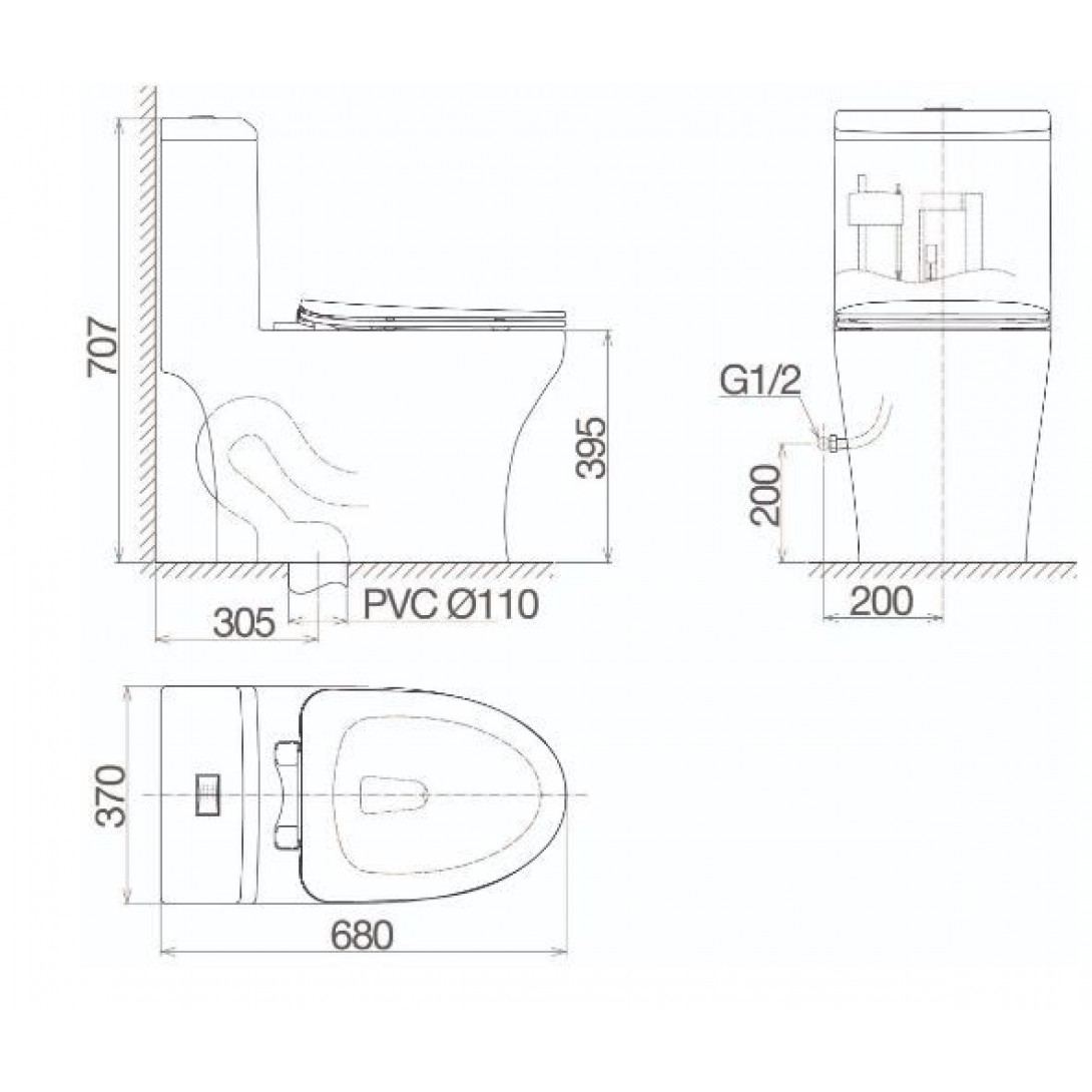 Bản vẽ bệ xí bệt V45 Viglacera 1 khối