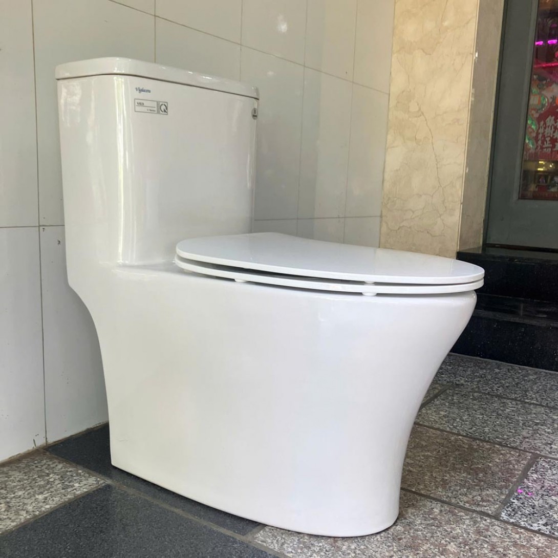 - Bồn cầu Viglacera V63 một khối (két liền) kiểu dáng đặc biệt đến từ thương hiệu thiết bị nội thất Viglacera