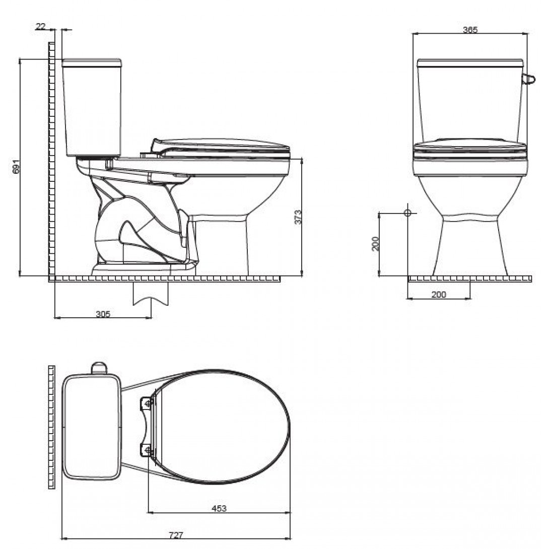Bản vẽ bệ xí bệt Viglacera V715 2 khối