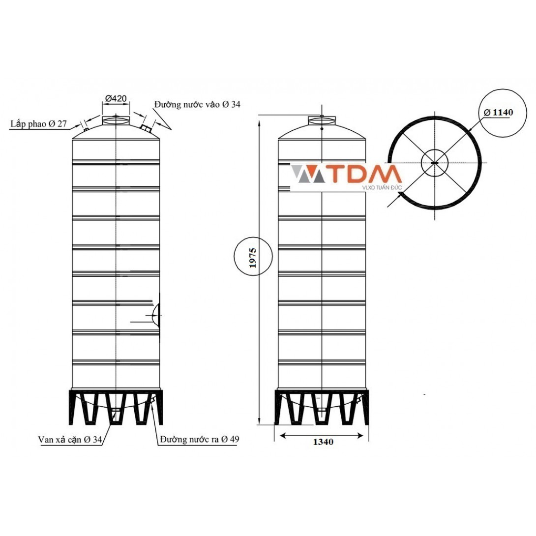 Bản vẽ téc nước inox 2000 lít đứng SUS 304 Sơn Hà