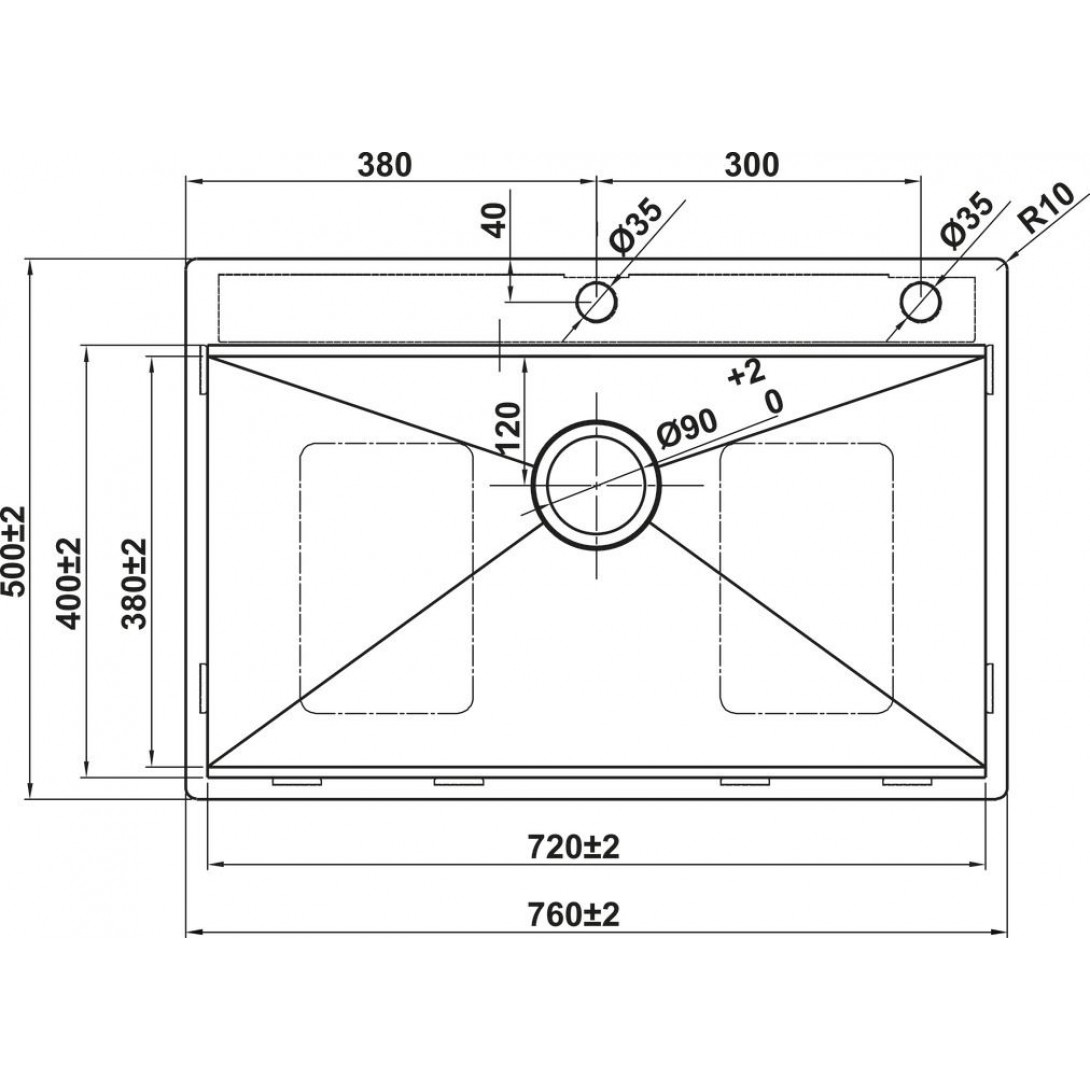 Bản vẽ chậu bếp 567.24.484 Hafele 1 hộc 760x500 mm