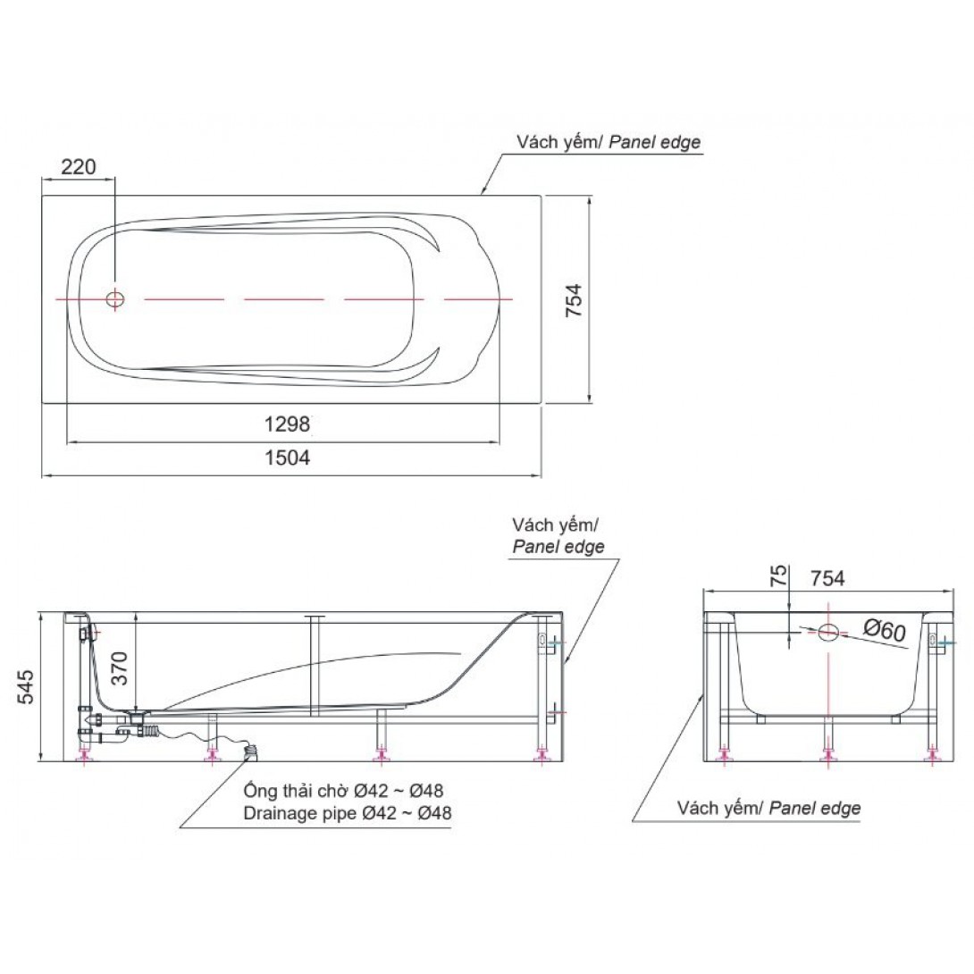 Bản vẽ kích thước bồn tắm INAX FBV-1502SR 1.5 mét