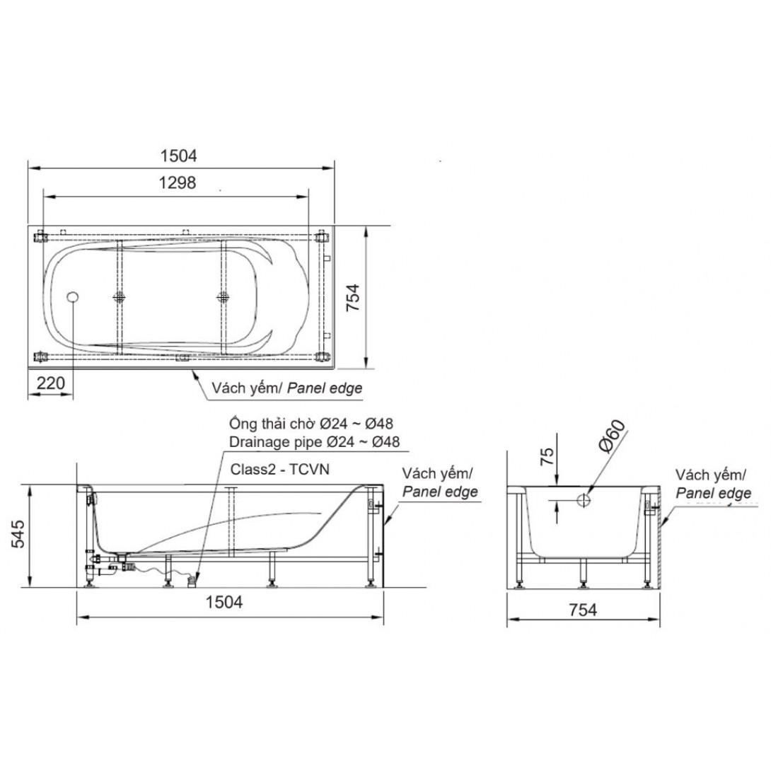 Bản vẽ kích thước bồn tắm INAX FBV1502SL 1.5 mét