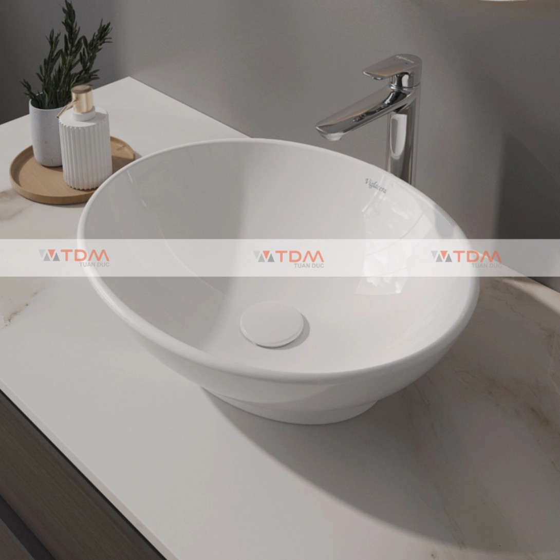 Chậu rửa mặt lavabo Viglacera BS415 đặt bàn đá oval - Tuấn Đức
