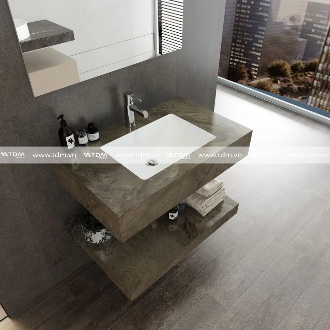 - Mặt bàn đá nung kết cao cấp: Chống thấm, chống trầy xước, diện tích rộng rãi để bày trí vật dụng.