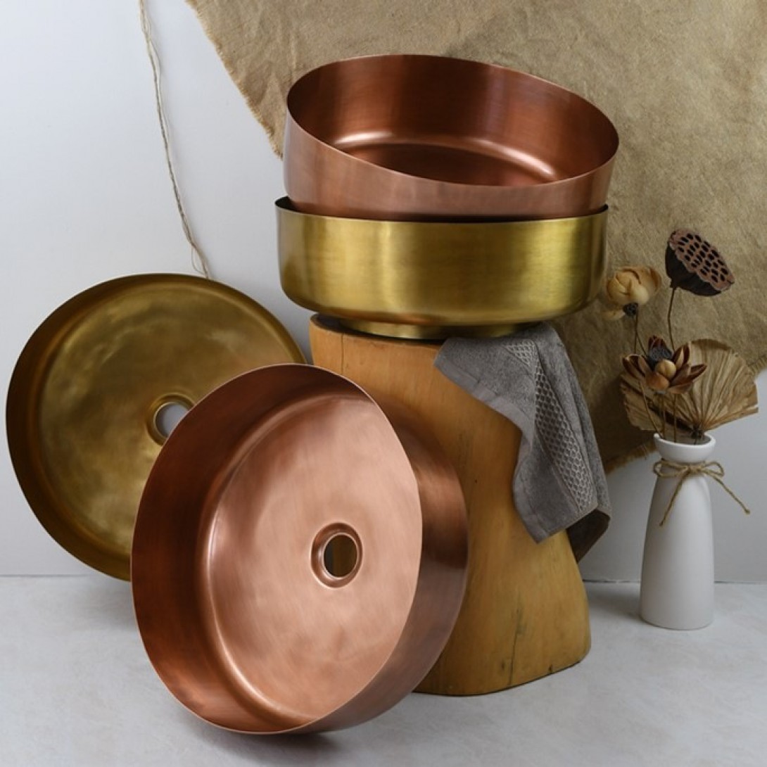 Bồn rửa mặt, rửa tay bằng đồng phong cách mộc mạc Chất liệu đồng dạng nguyên tấm, đồn..