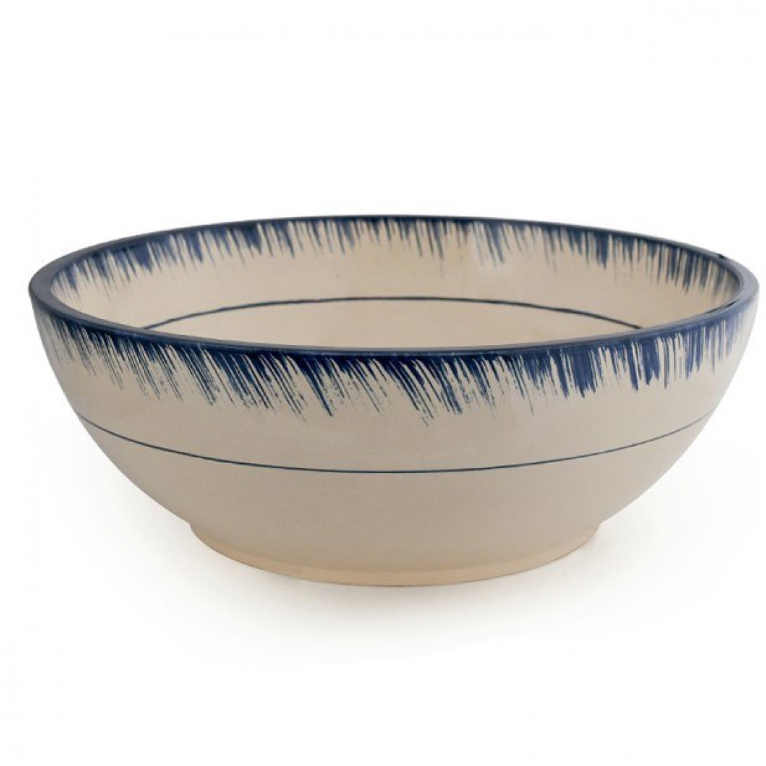 - Chậu lavabo gốm Việt Nam GV101 mang hình dáng tròn đầy, tựa như vầng trăng rằm tháng Tám, vừa vặn và thanh thoát. Lớp men ngà, ánh sắc gốm tự nhiên, không chói lóa, không vẽ vời phù phiếm. Nhưng chính nơi ấy, những đường phết lam trên viền miệng chậu mới là hồn vía của toàn thể chiếc chậu.