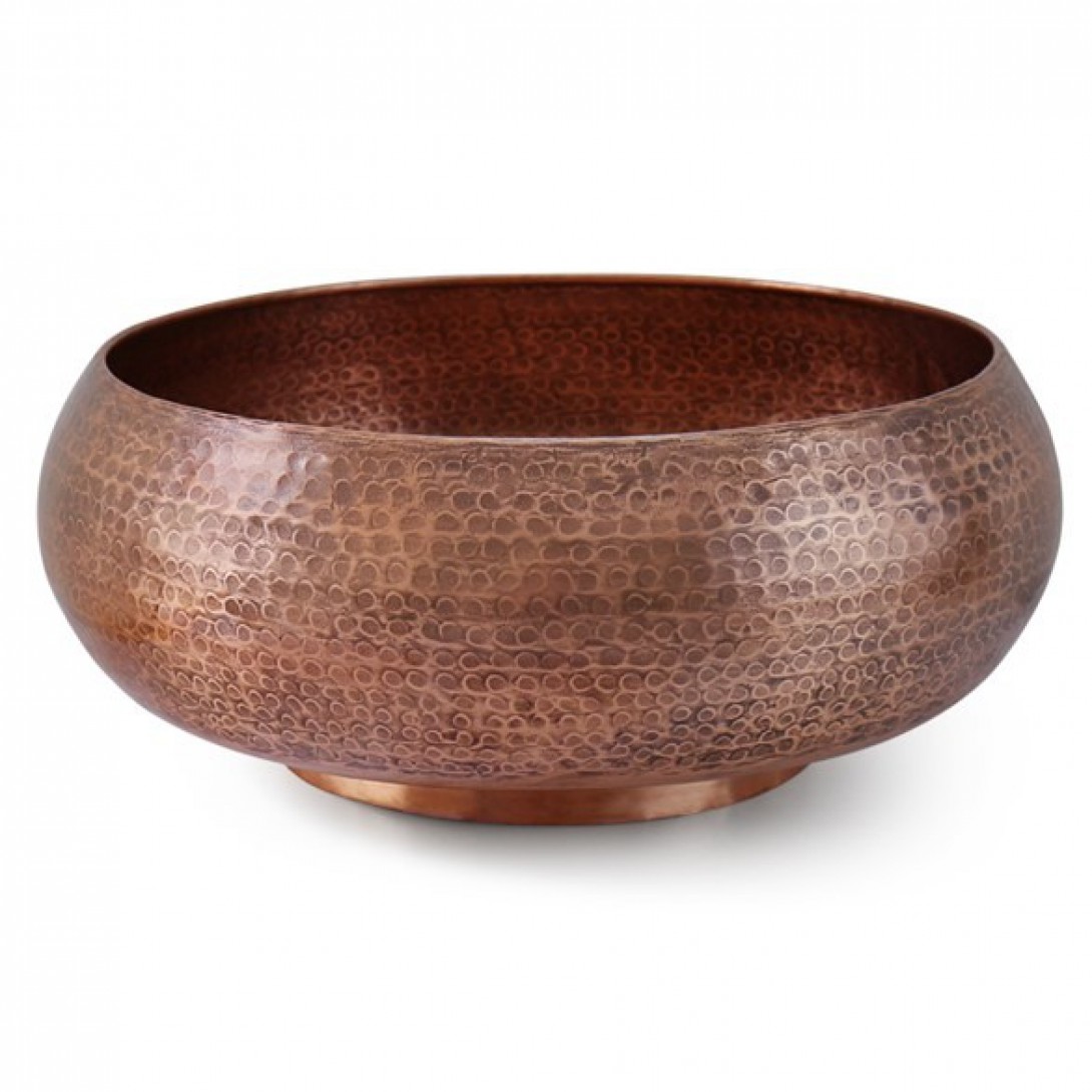 - Từ chất liệu đồng đỏ nguyên tấm được người thợ làng nghề truyền thống Việt Nam thực hiện quá trình cắt, gò, hàn và gõ, đập hàng ngàn nhát búa để chế tác thủ công từng chiếc một, mang lại vẻ đẹp mỹ thuật mộc mạc, độc đáo riêng biệt cho chiếc chậu.