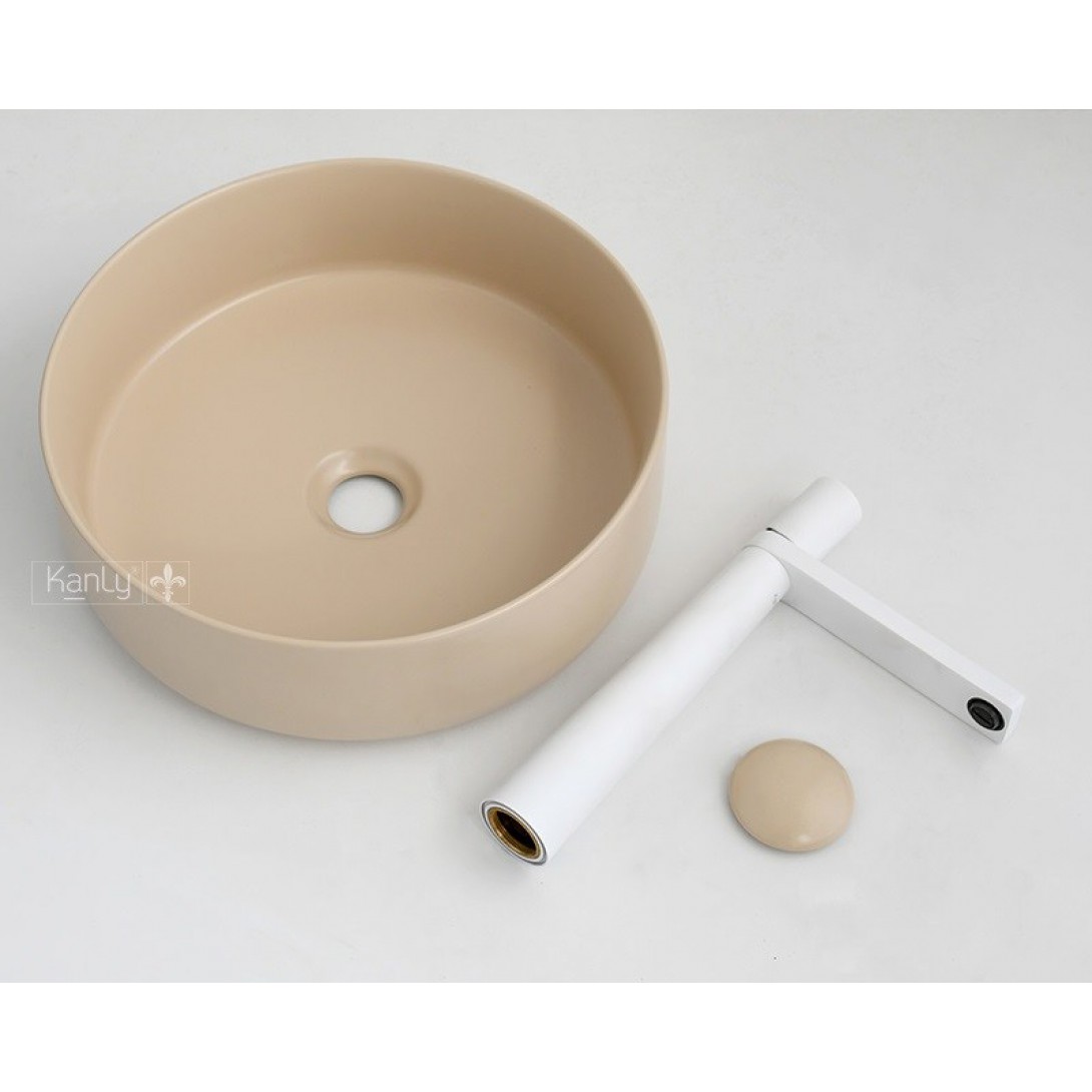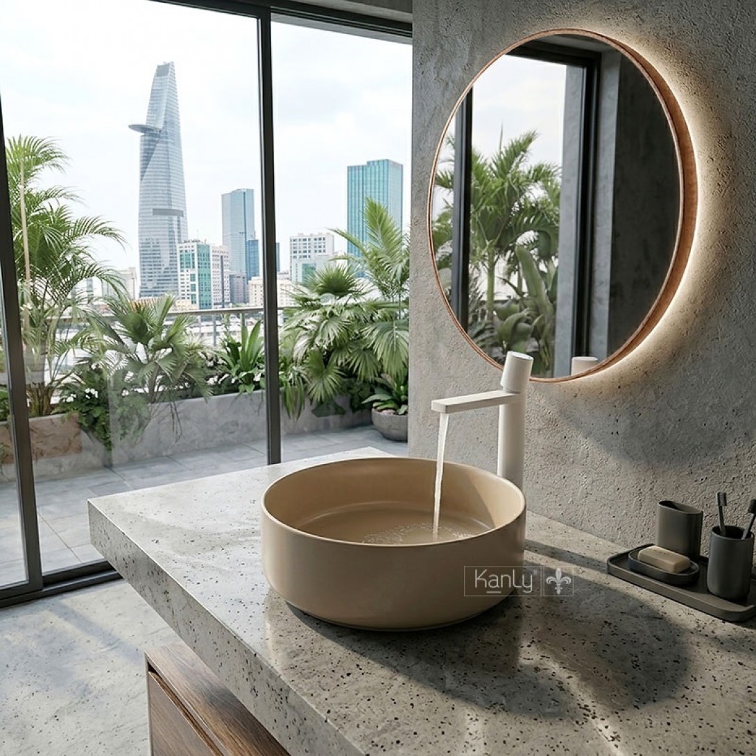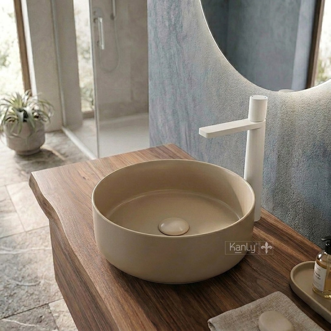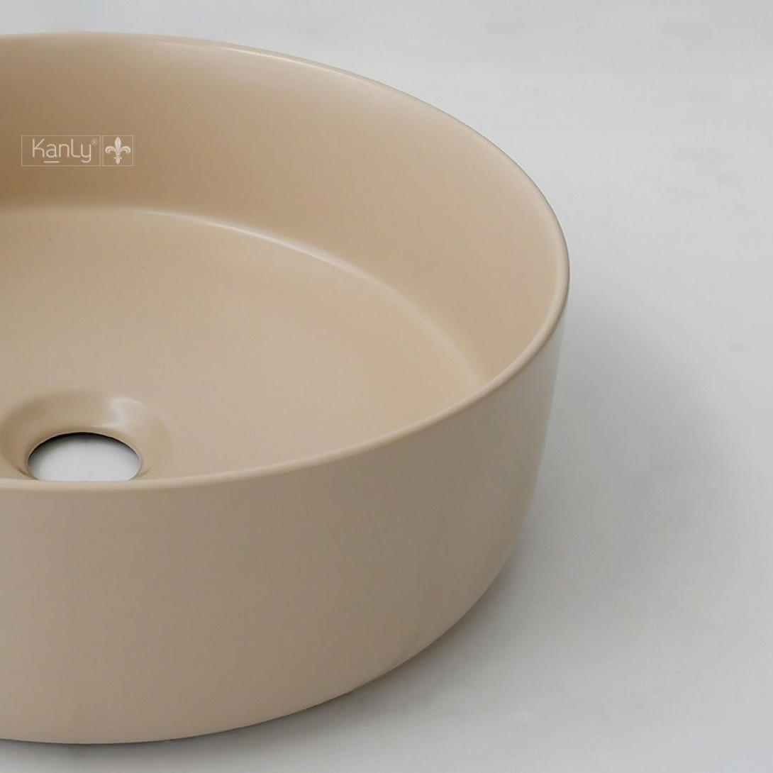 Chậu Lavabo Kanly SU5211 Đặt Bàn Sứ Tròn Màu Be