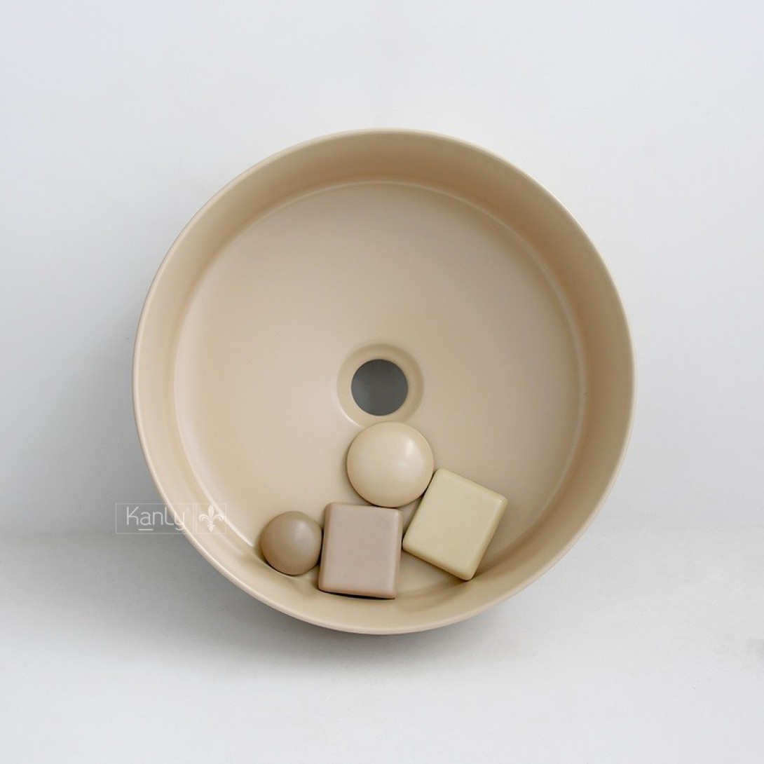 Chậu Lavabo Kanly SU5211 Đặt Bàn Sứ Tròn Màu Be - Tuấn Đức