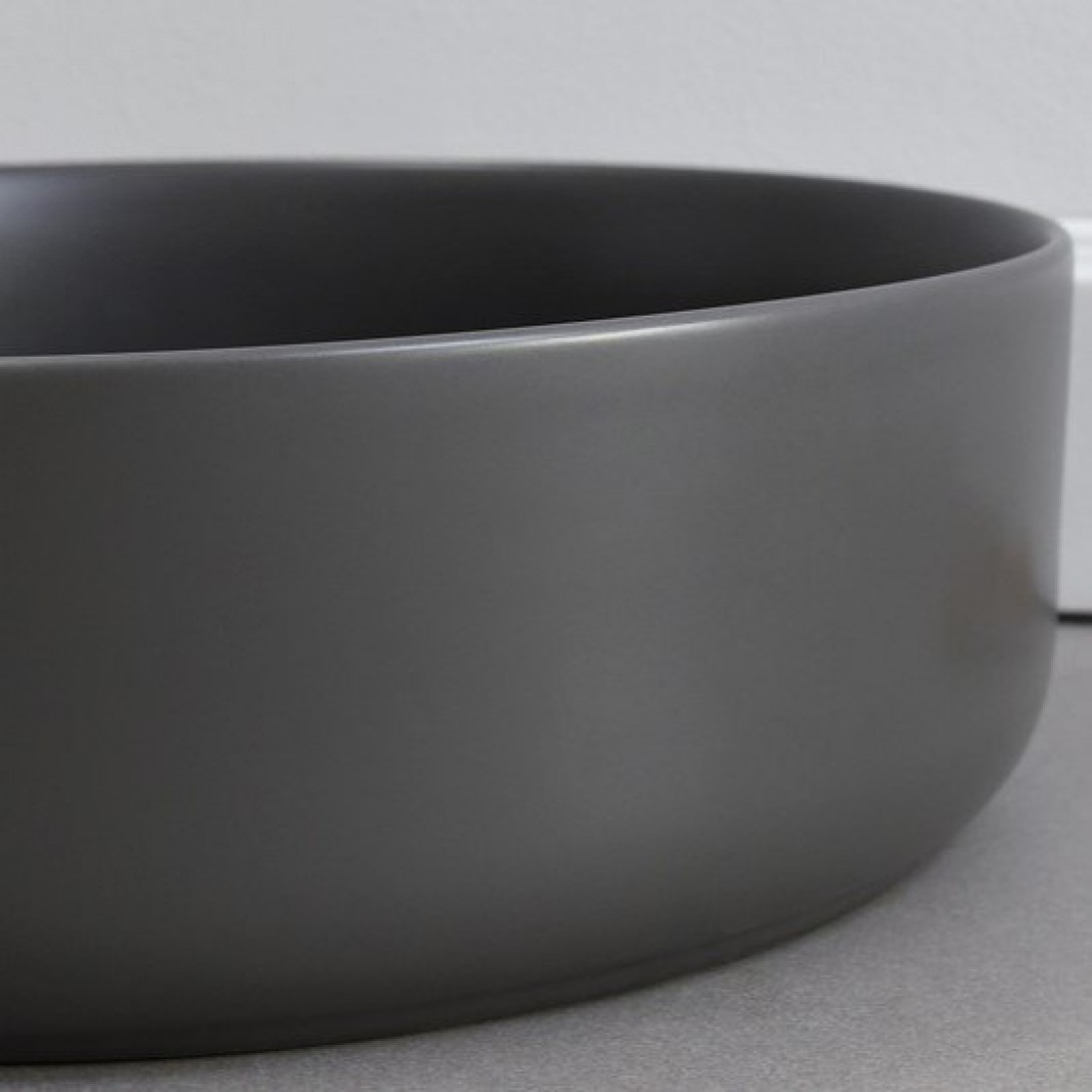 Chậu Lavabo Kanly SU527 Đặt Bàn Sứ Tròn Màu Xám 360x120 mm