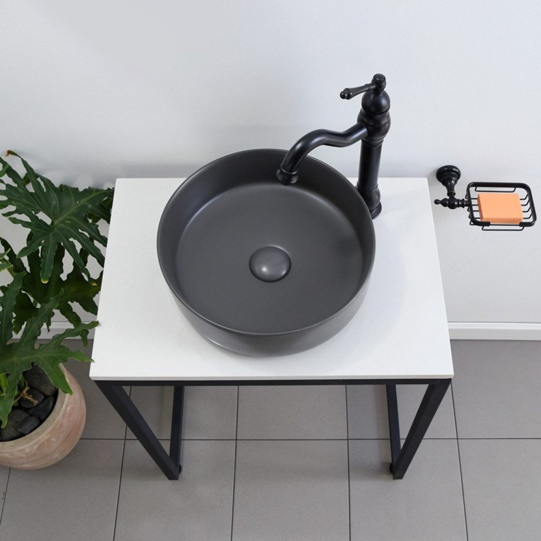 Chậu Lavabo Kanly SU512 Đặt Bàn Sứ Tròn Màu Đen 400mm