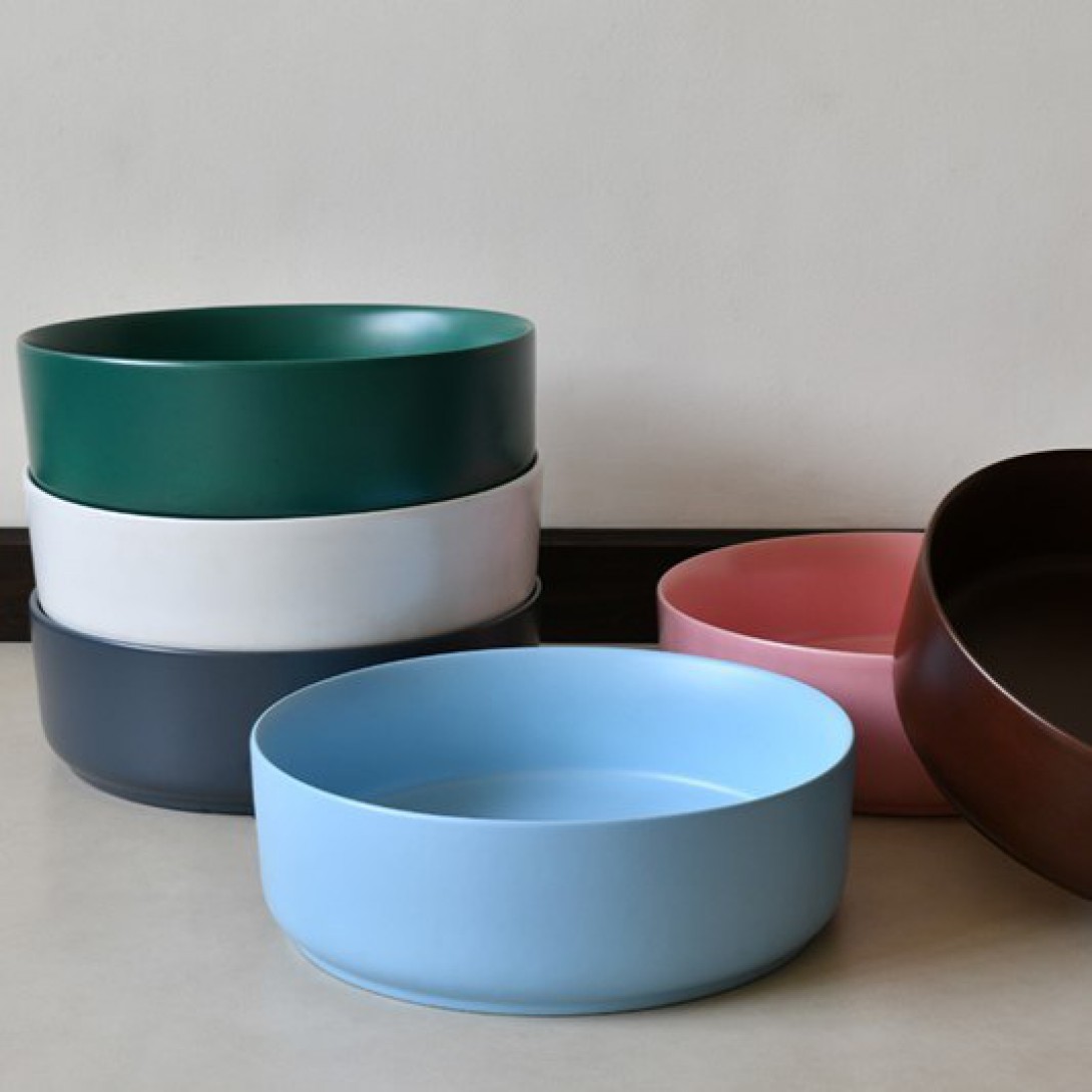 Reviews Over Chậu Lavabo Kanly SU527 Đặt Bàn Sứ Tròn Màu Xám 360x120 mm