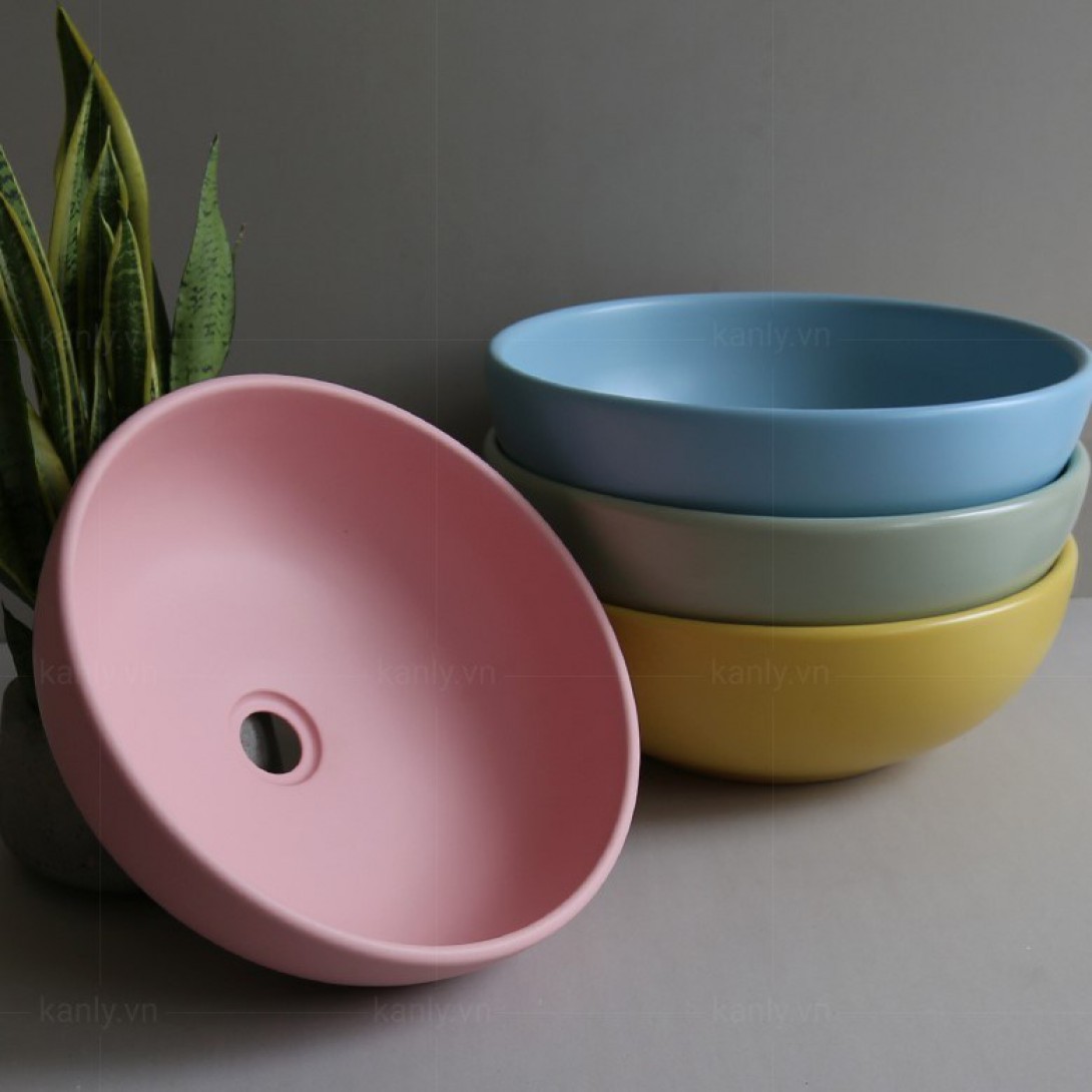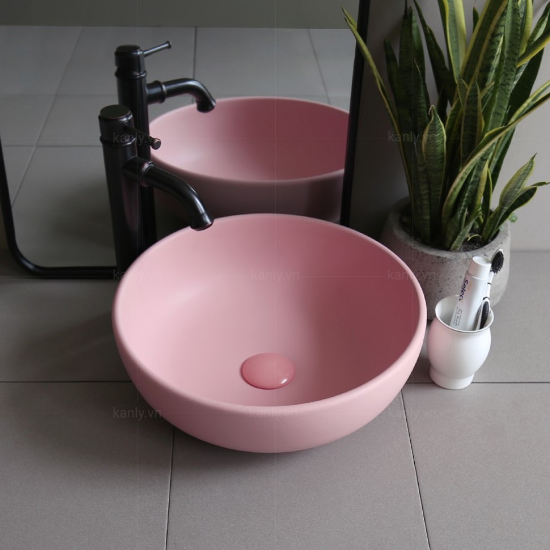 Chậu Lavabo Kanly SU510 Đặt Bàn Sứ Tròn Màu Hồng 400x140 mm - Tuấn Đức