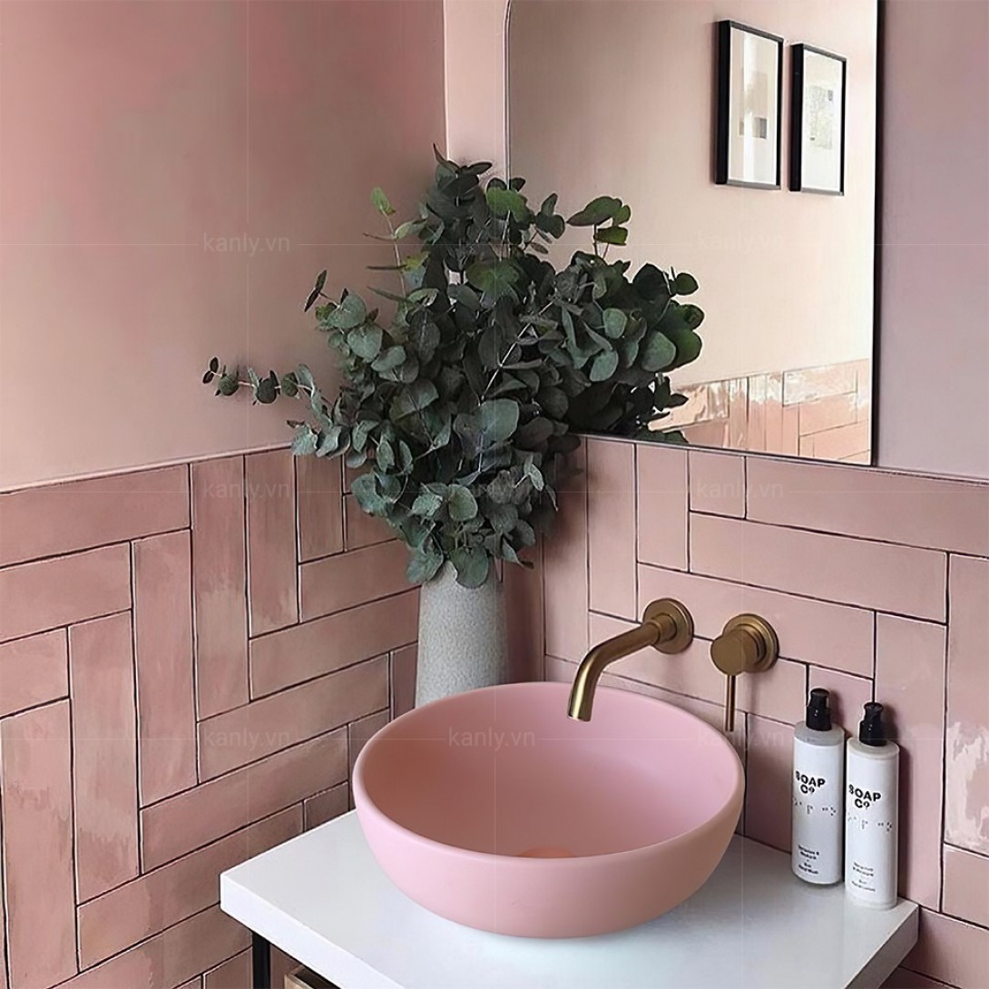 - Lavabo sứ màu hồng Pastel mờ mịn, thể hiện nét thanh lịch, dịu dàng và sang trọng, phù hợp với những ý tưởng thiết kế không gian kiến trúc theo phong cách Millennial Pink, Colour-Block…