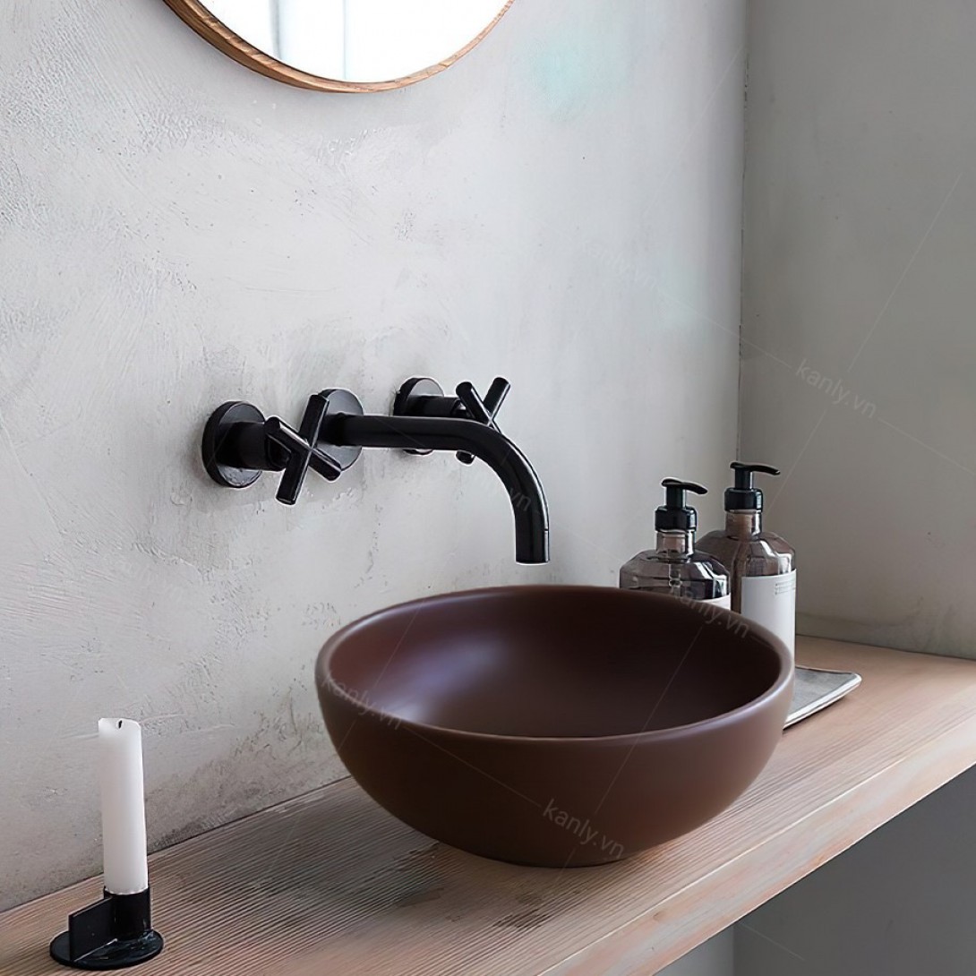 Chậu Lavabo Kanly SU511 Đặt Bàn Sứ Tròn Màu Nâu 400x140 mm - Tuấn Đức