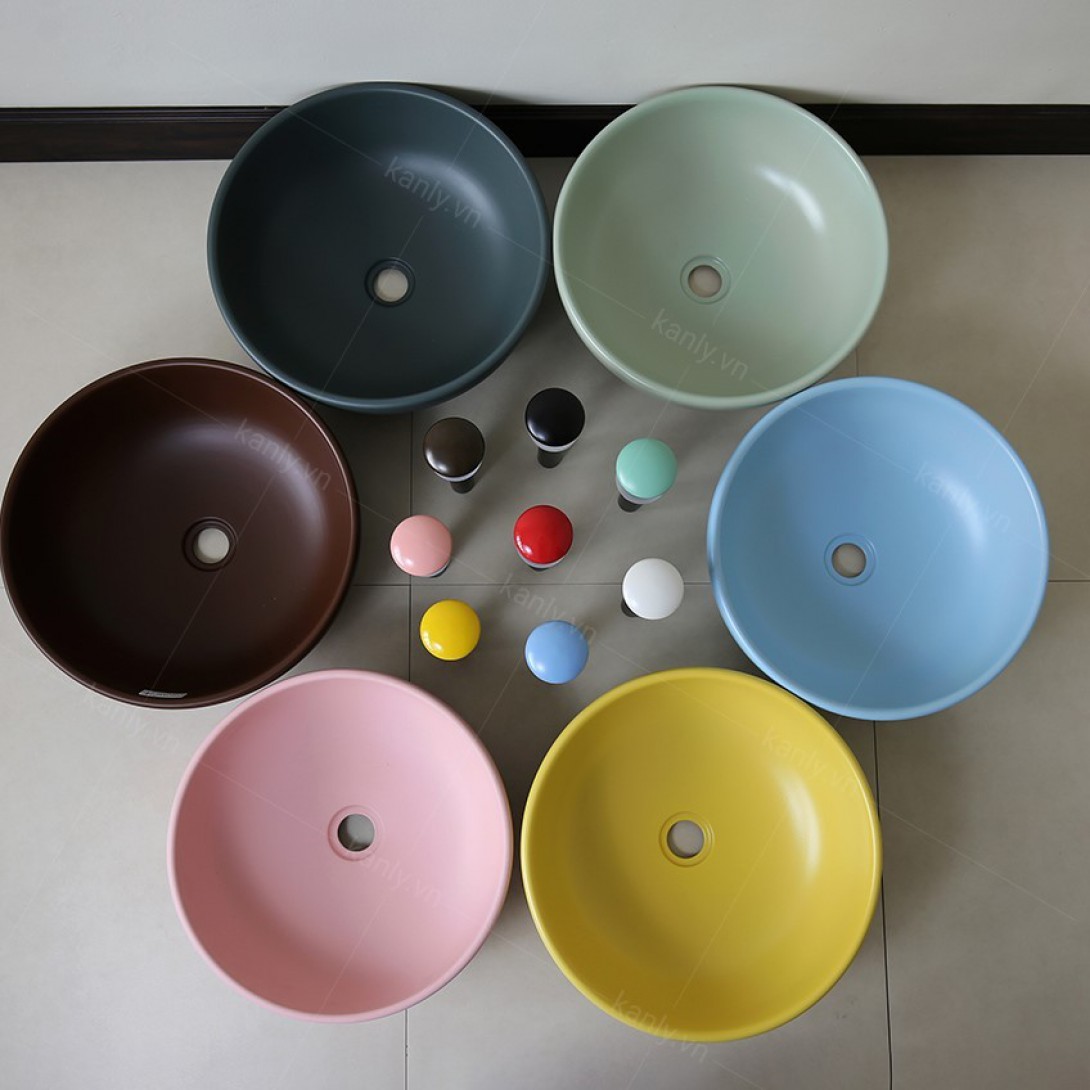 Reviews Over Chậu Lavabo Kanly SU511 Đặt Bàn Sứ Tròn Màu Nâu 400x140 mm