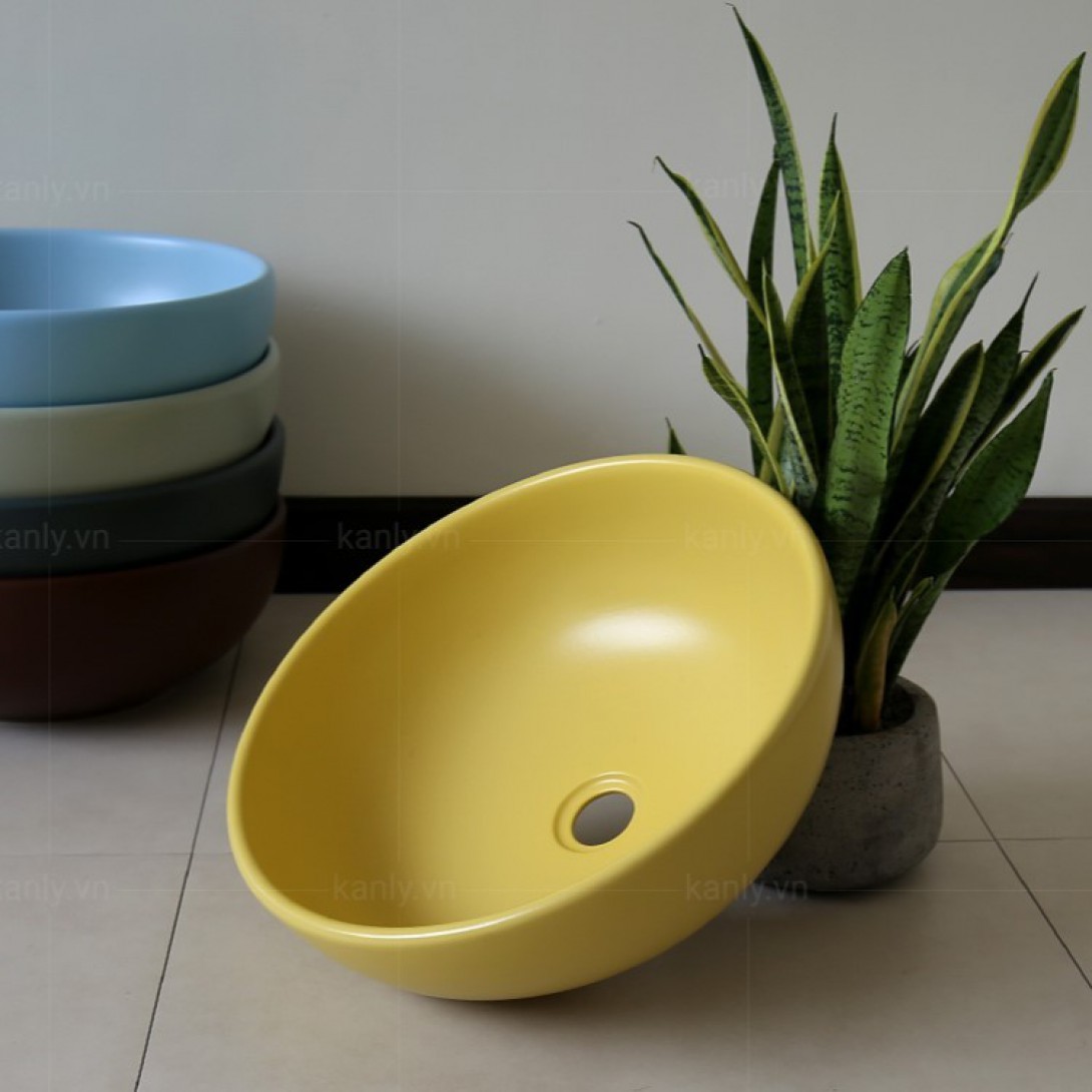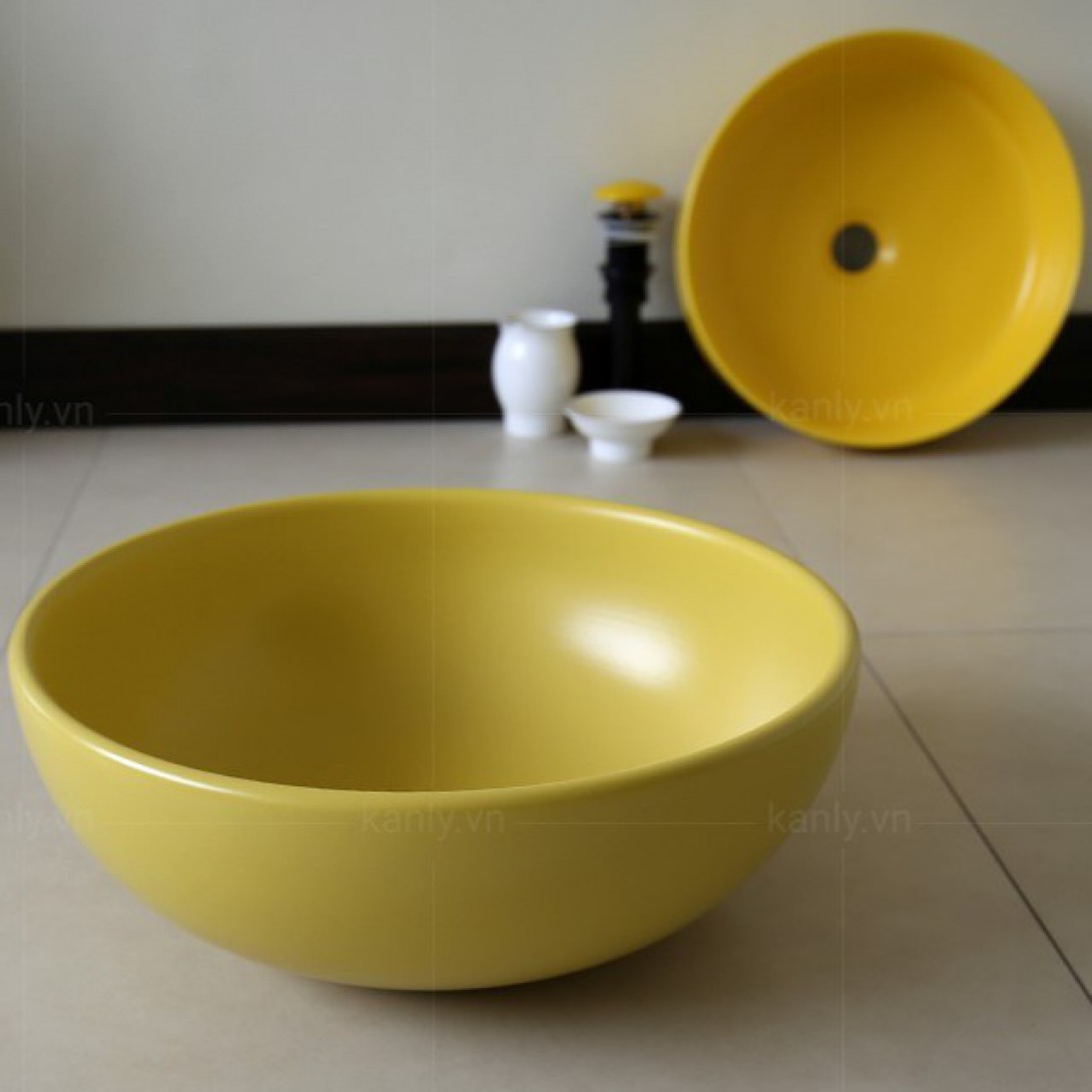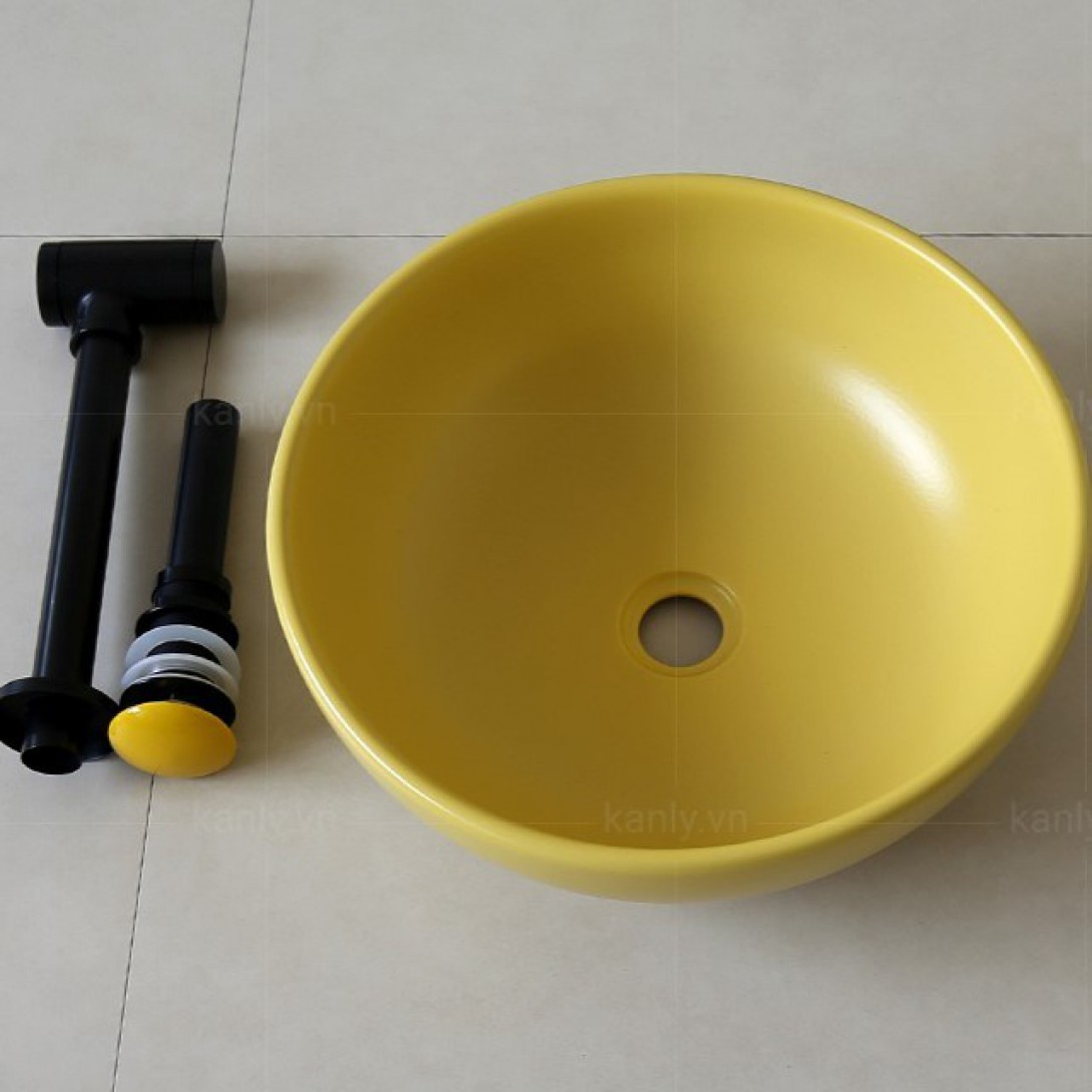Chậu rửa mặt lavabo Kanly SU514 đặt bàn sứ tròn màu vàng 400x140 mm
