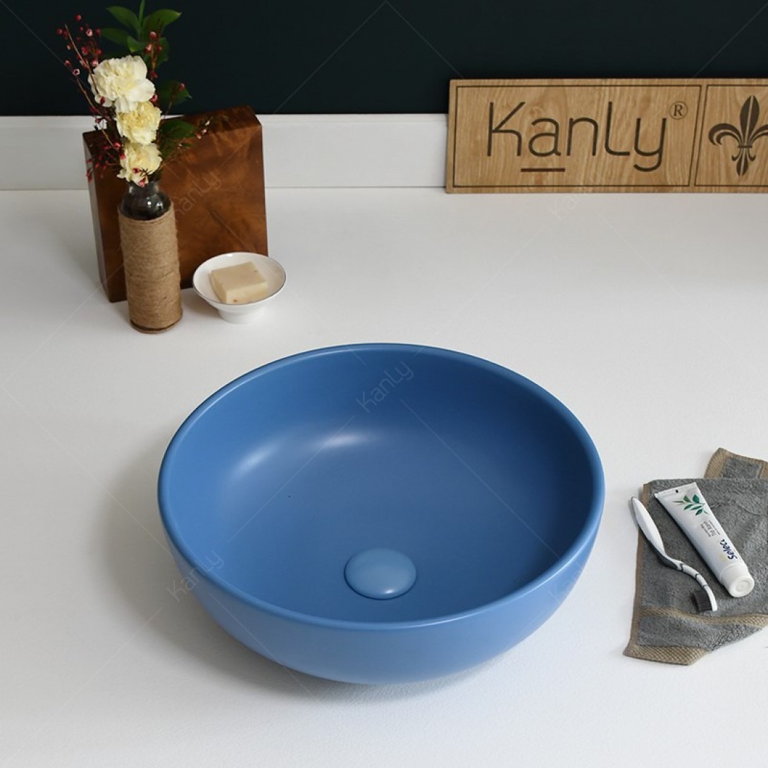 Chậu Lavabo Kanly SU515 Đặt Bàn Sứ Tròn Màu Xanh Dương 400x140 mm - Tuấn Đức