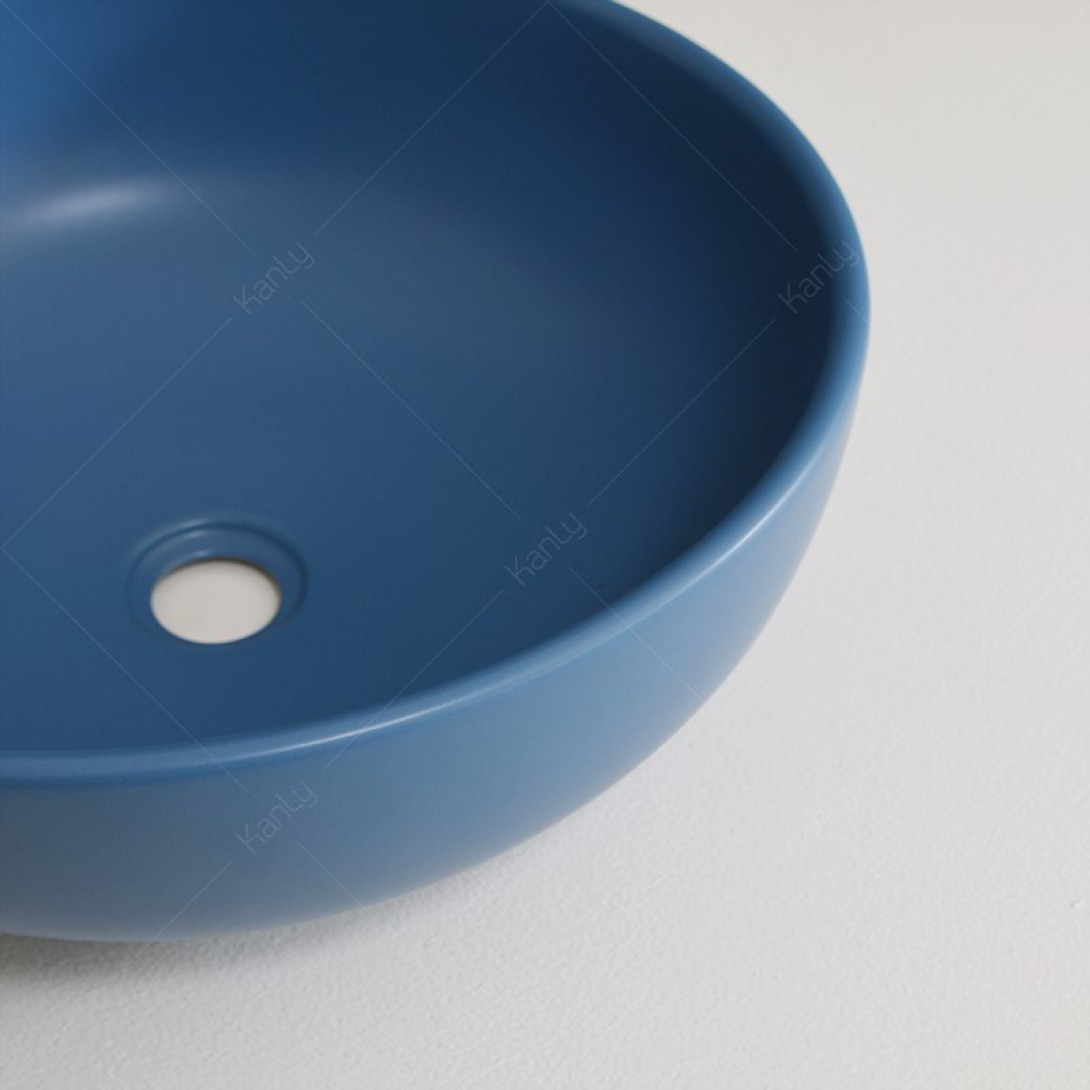 Chậu Lavabo Kanly SU515 Đặt Bàn Sứ Tròn Màu Xanh Dương 400x140 mm