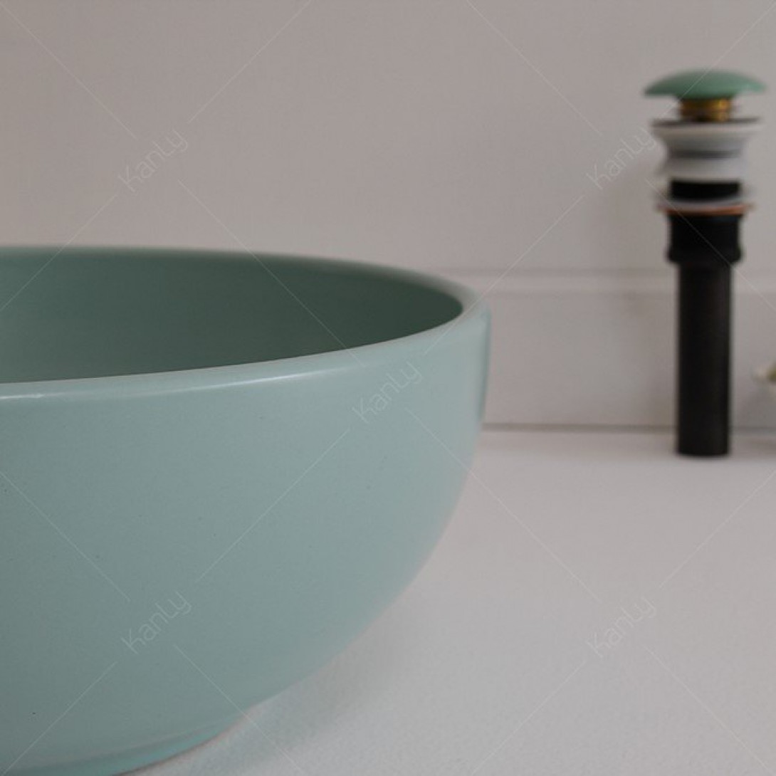 Chậu Lavabo Kanly SU516 Đặt Bàn Sứ Tròn Màu Xanh Ngọc 400x140 mm - Tuấn Đức