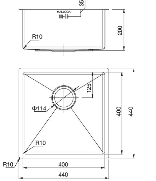 Bản vẽ kích thước chậu inox 304 Malloca MS 1044P rửa chén bát :