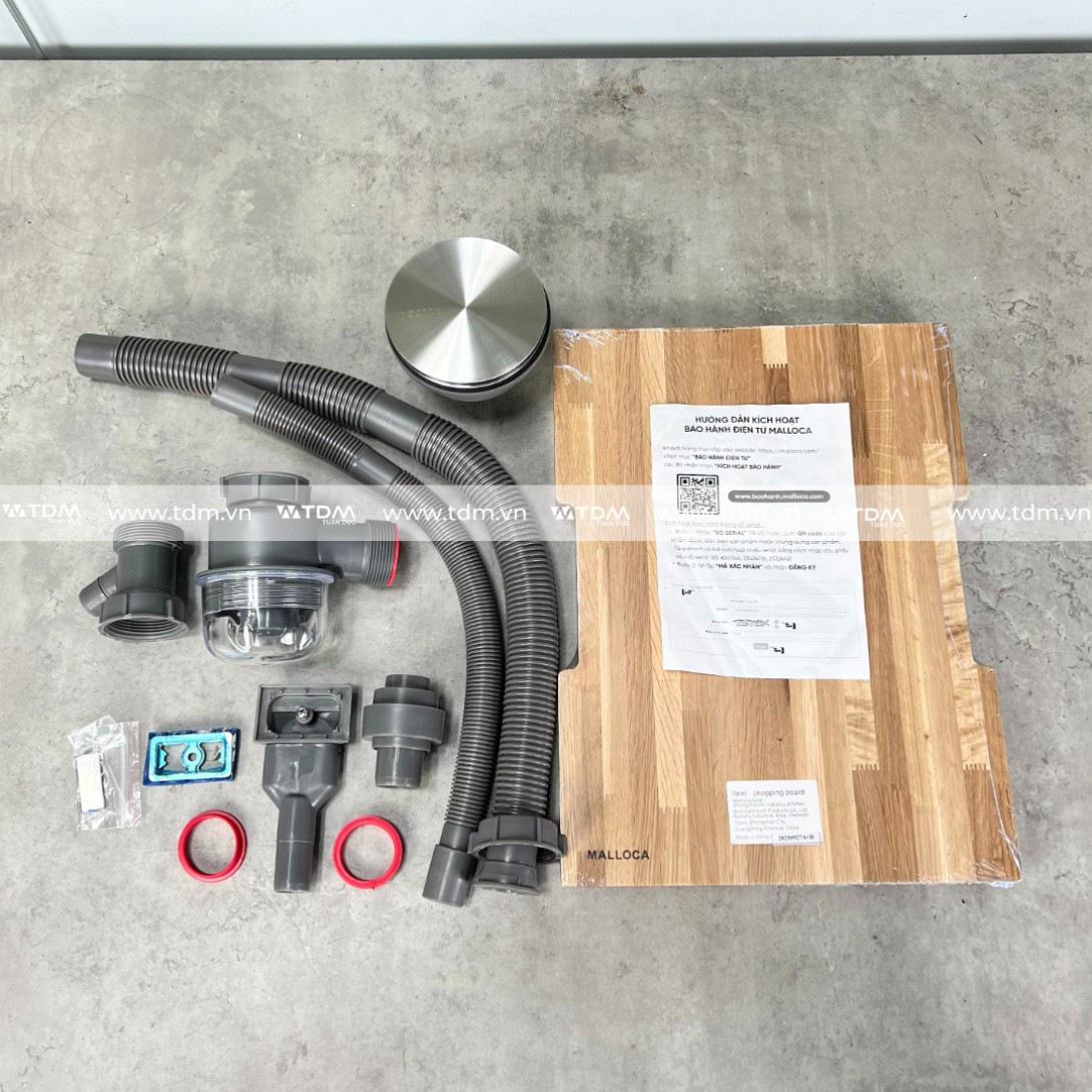 Chậu Rửa Chén Bát Malloca MS 861 Inox 304 1 Hộc Kèm Rổ Thớt