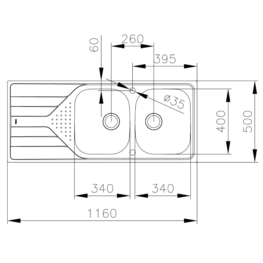 Bản vẽ kích thước chậu rửa bát 115170001 TEKA 2 hộc