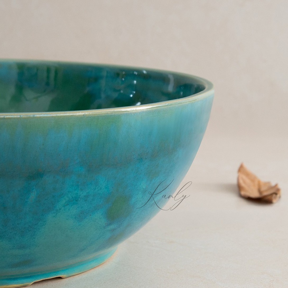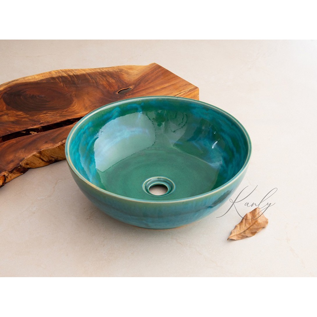 Chậu Rửa Mặt Lavabo Kanly Gốm Họa Tiết Xanh Rạn GV006 Đặt Bàn - Tuấn Đức