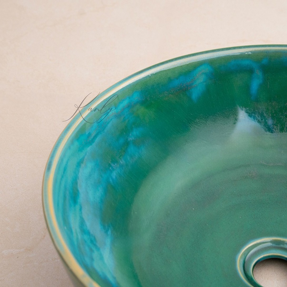 Chậu Rửa Mặt Lavabo Kanly Gốm Họa Tiết Xanh Rạn GV006 Đặt Bàn