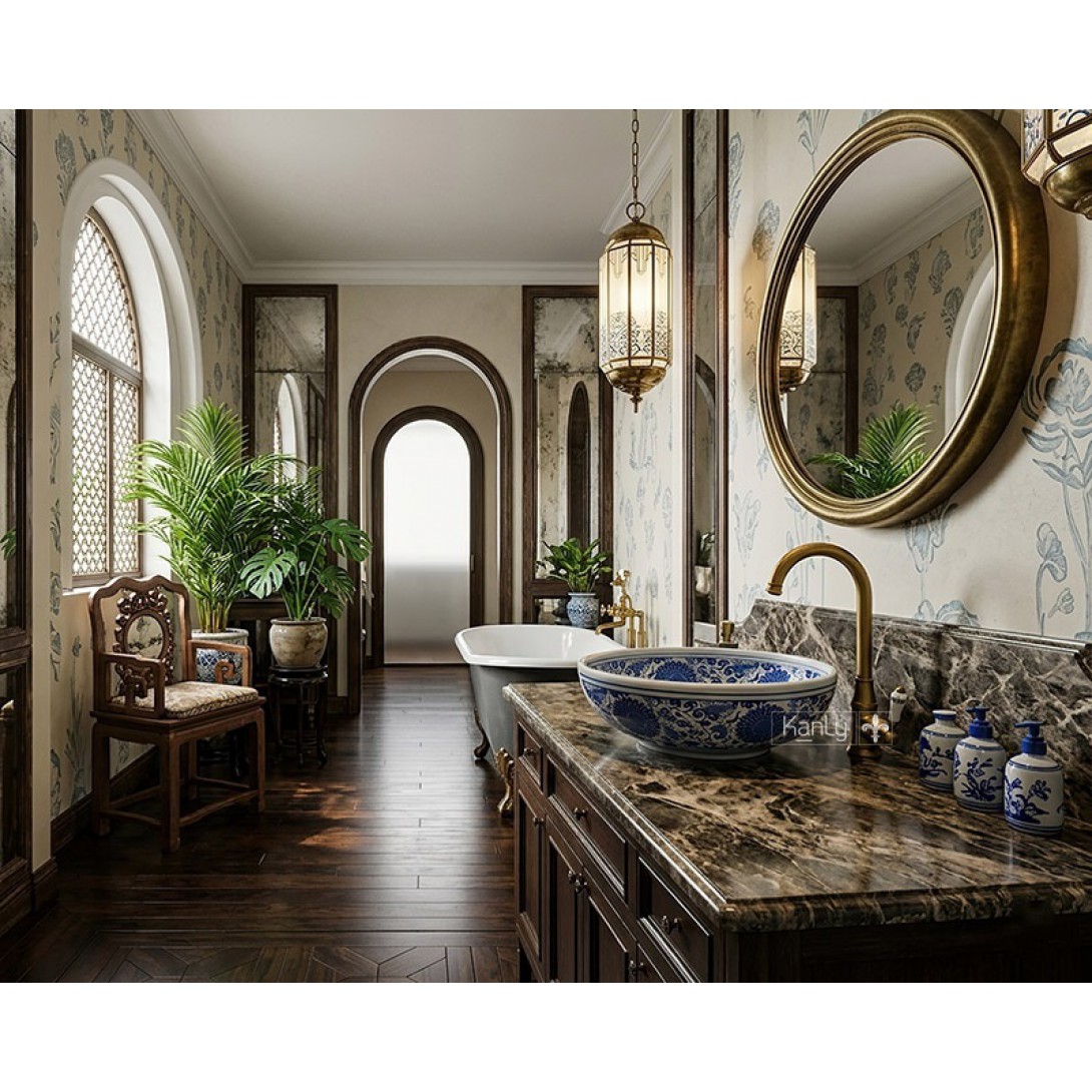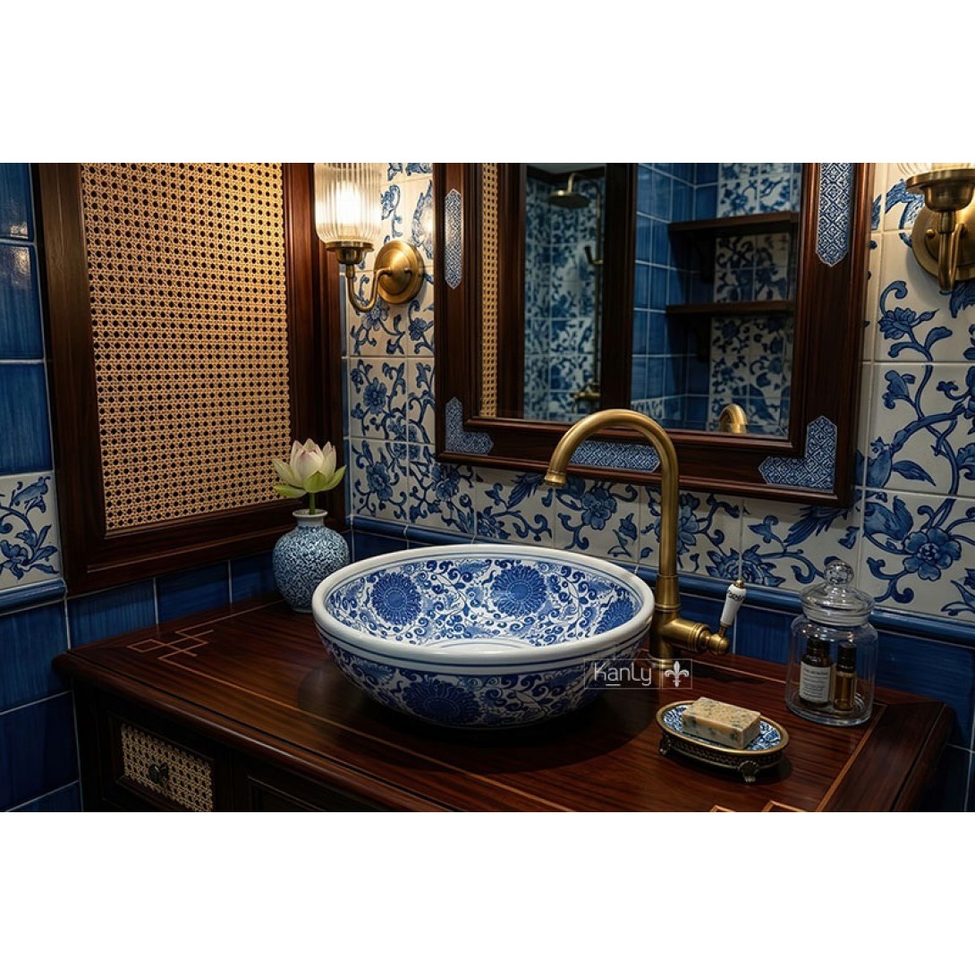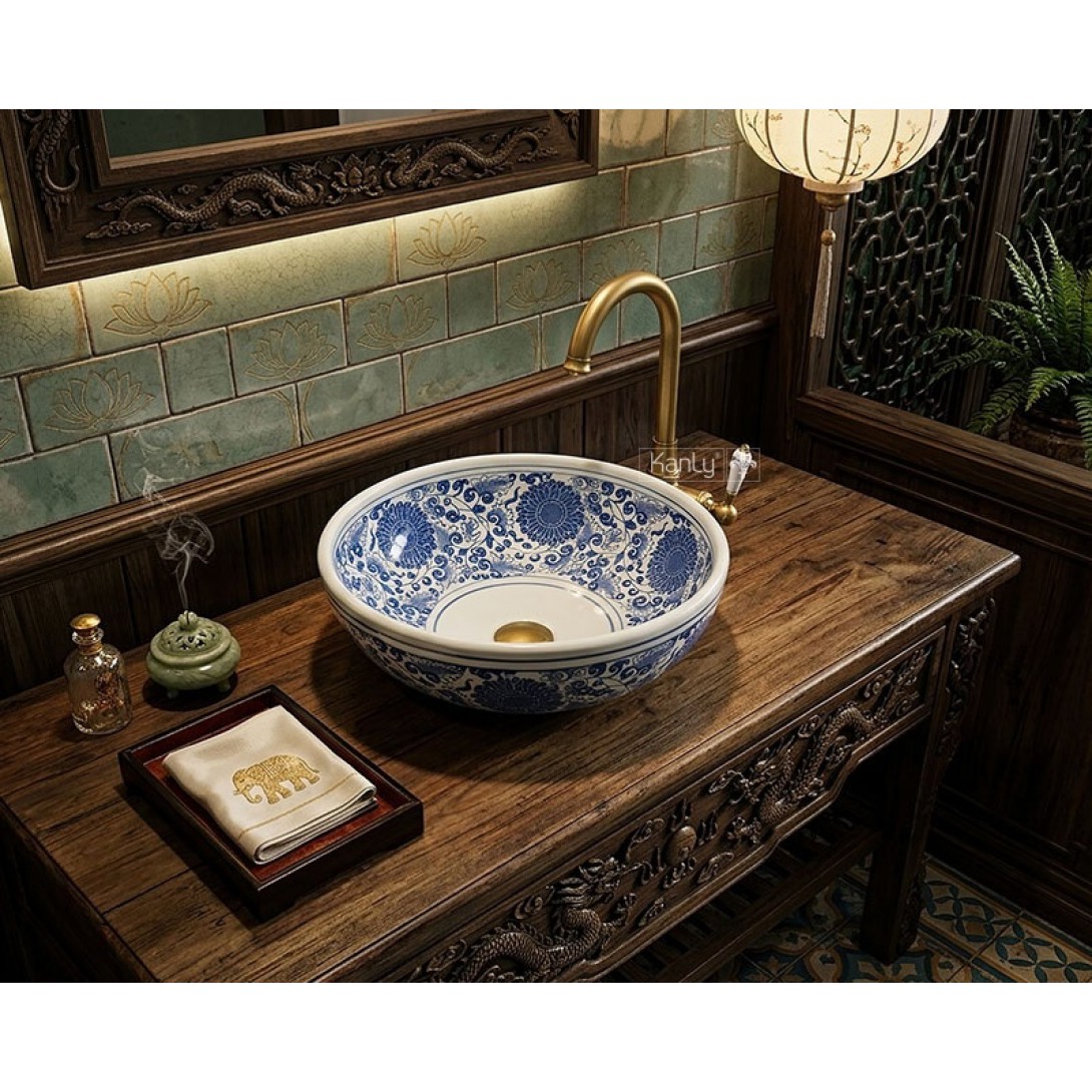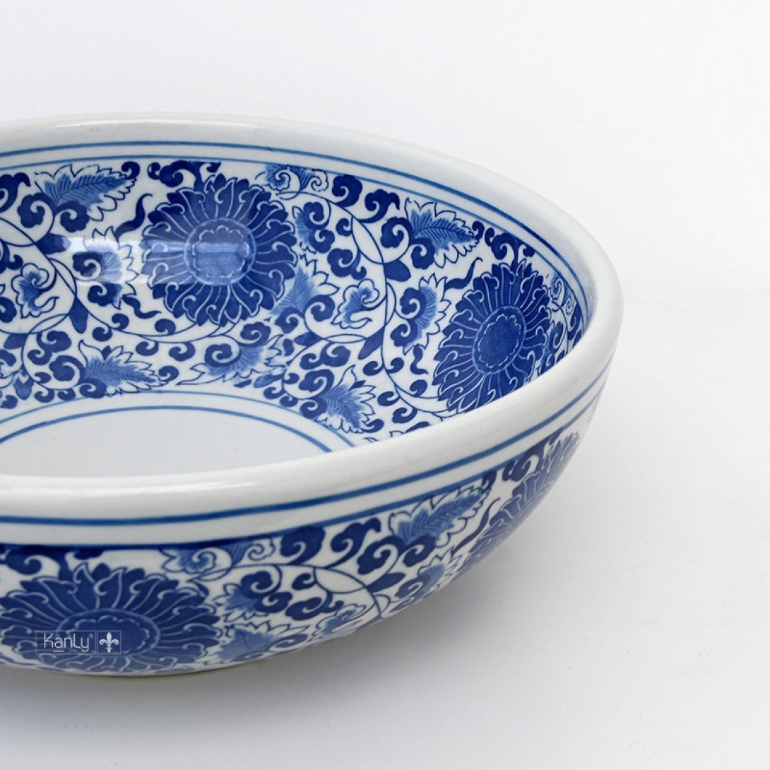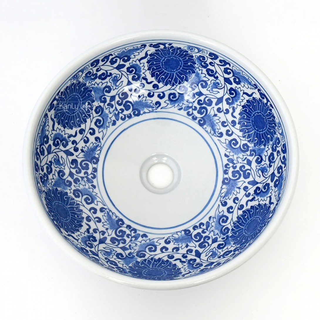 Chậu Rửa Mặt Lavabo Kanly SU121 Vẽ Hoa Văn Thủ Công Đặt Bàn Sứ Mỹ Thuật