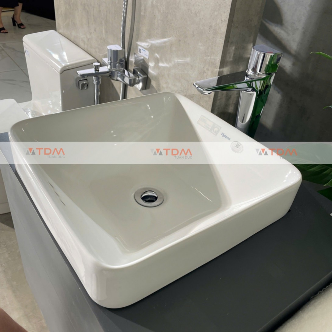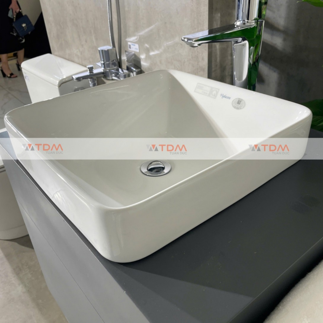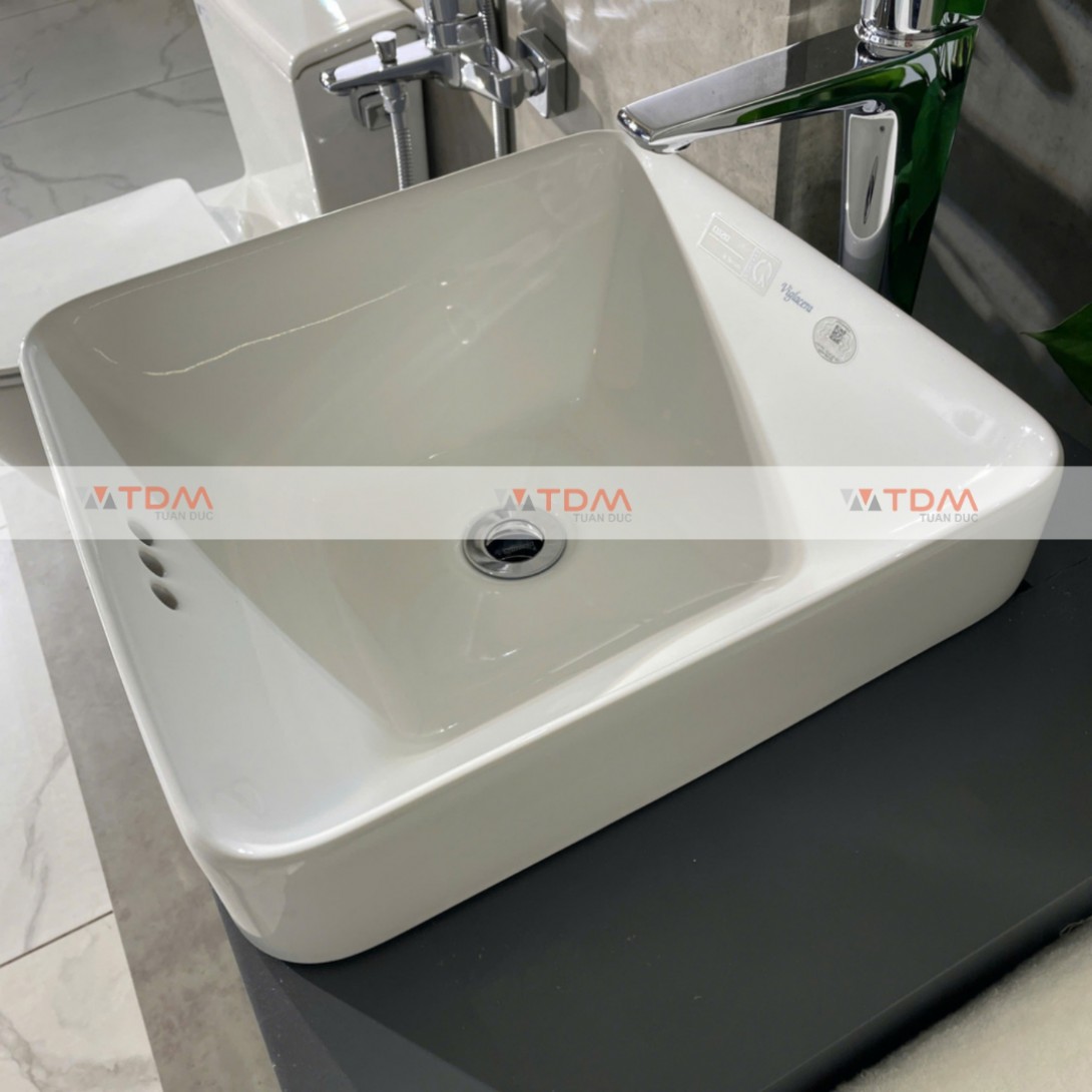 Chậu rửa mặt lavabo Viglacera CD20 đặt bàn đá vuông - Tuấn Đức