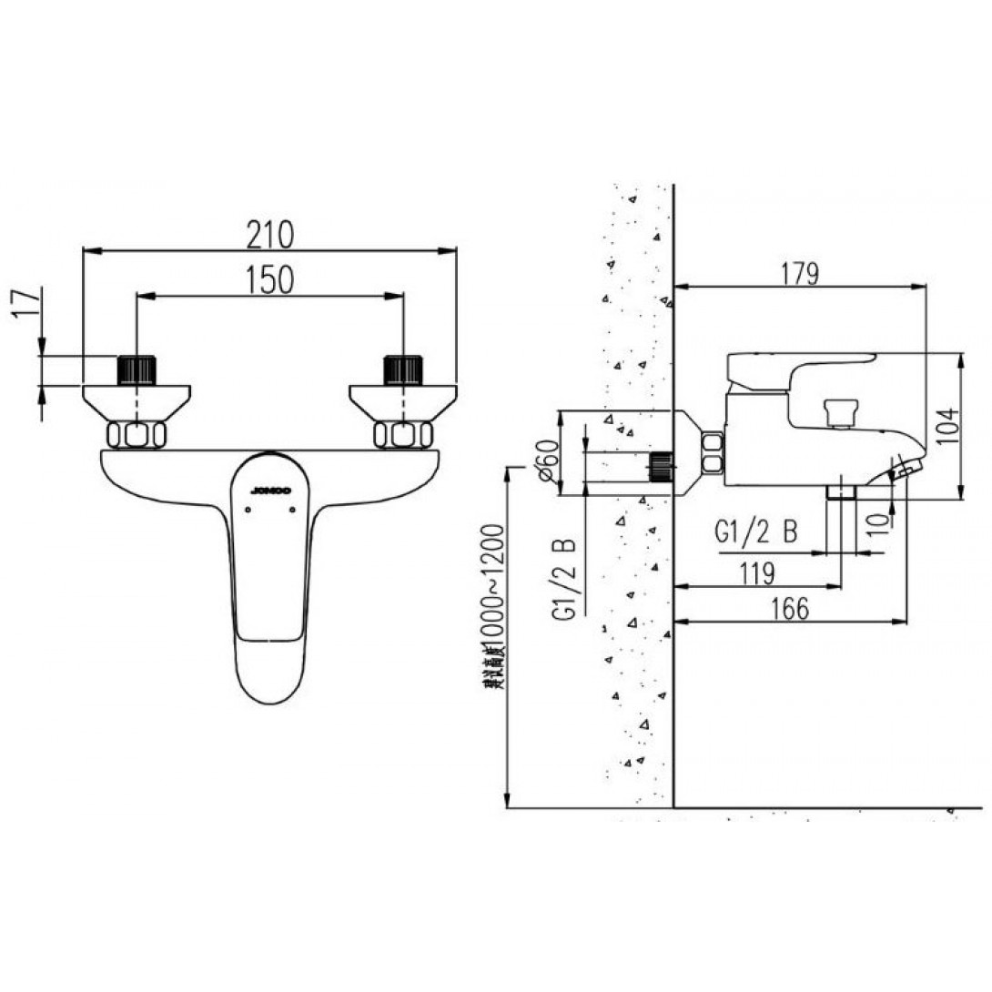 - Vị trí chờ: Ren G1/2 khoảng cách 150mm