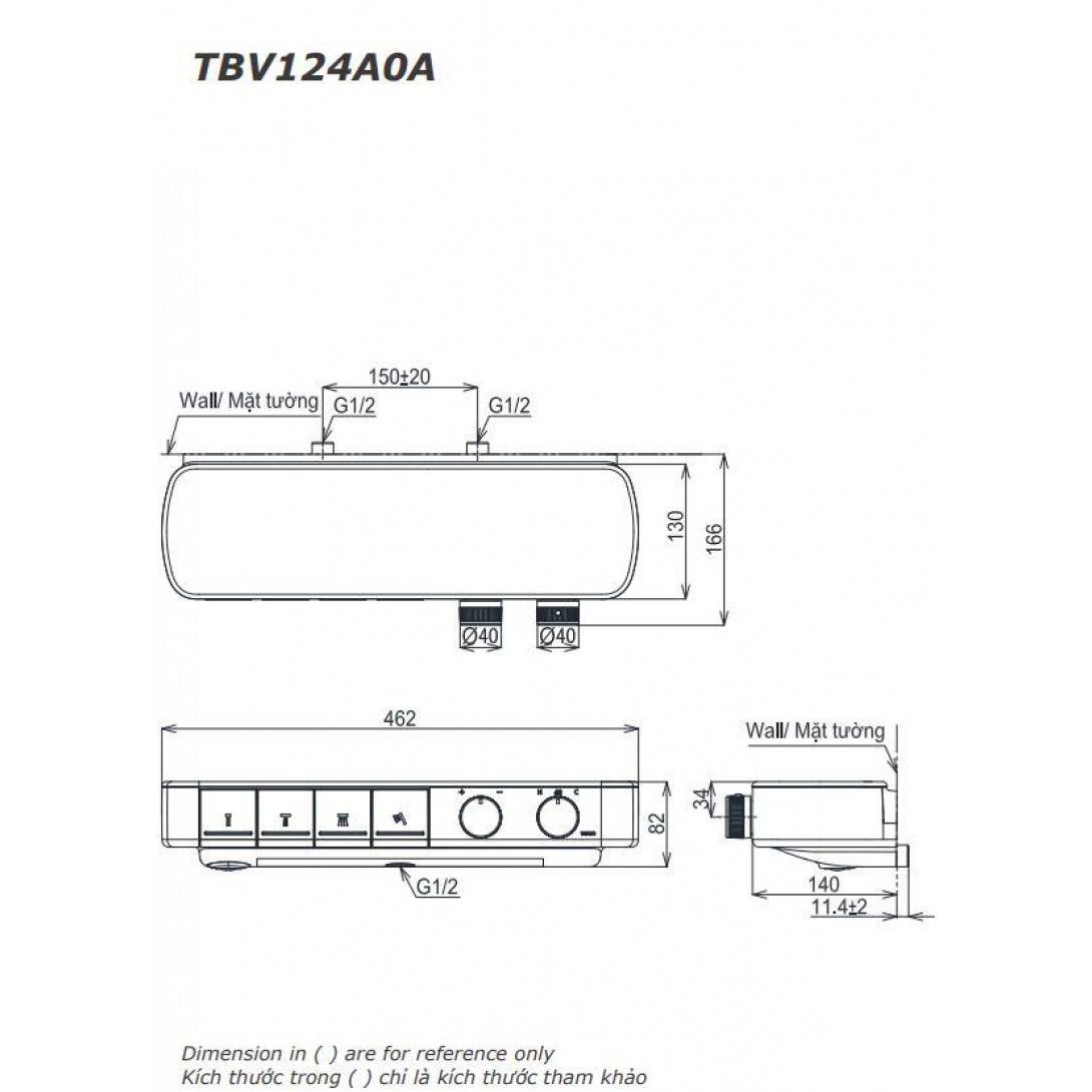 Thông số kỹ thuật van điều chỉnh nhiệt độ TOTO TBV01402BA Mã sản phẩm: TBV01402BA..